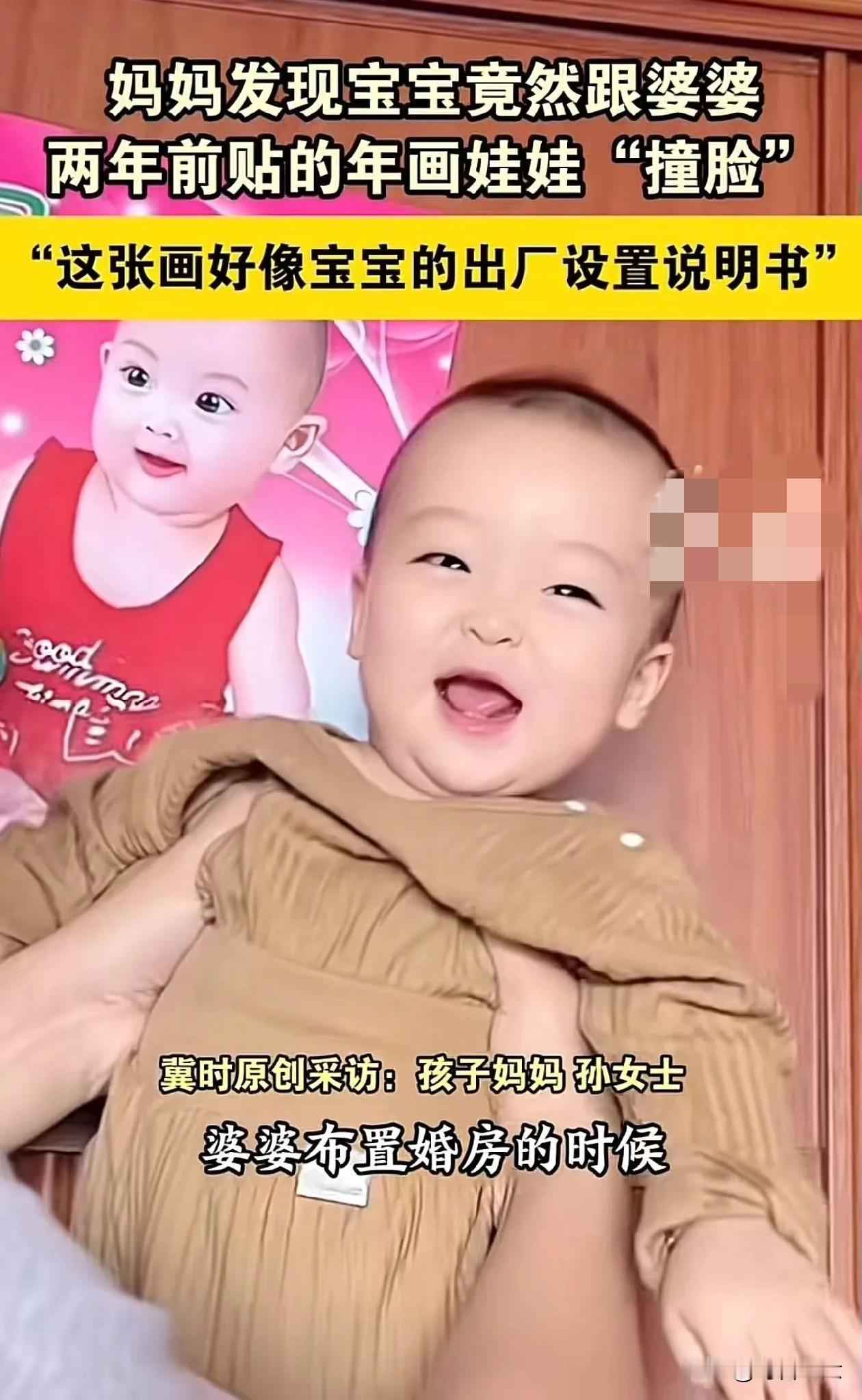 “这次科学解释不了!”山东济南,妈妈带宝宝回老家,发现宝宝居然跟婆婆两年前贴的年画娃娃“撞脸”!妈妈:“不能说一模一样,简直是一个模子刻出来的!相似度99%!”网友:真像,有点不科学了! 事情还得从孙女士结婚时说起。那时候,婆婆满心盼着孙女士能早点生个可爱的大胖小子,便在他们的婚房里贴上了一张可爱的宝宝海报,海报上的男宝宝眉清目秀,模样十分讨喜。 这事儿巧归巧,其实没那么玄乎——婆婆贴年画时,把对孙子的期待都揉进眼神里了,每天瞅着画念叨“啥时候能抱上这样的娃”,这份心思早把画和未来的孙儿“拴”在一块儿。 等宝宝真出生,孙女士抱着娃回老家,婆婆举着画跟娃比对耳垂、笑纹,连“小下巴尖不尖”都要说两句,孙女士跟着就被感染了——不是娃跟画像,是俩人心都往一处想,看什么都像。 心理学里叫“确认偏差”,人一旦认定了“像”,就会主动扒细节凑证据。就像你买了杯喜欢的奶茶,之后看谁拿类似的杯子都觉得“跟我这杯一样”。 不是杯子多了,是你心里先装了“喜欢”这回事。网友说“不科学”,其实是被这份巧合暖到了——婆婆的盼、孙女的娃,刚好撞进了同一张可爱的脸上,比科学解释更让人开心的,是爱凑的“小惊喜”。 说到底,这不是画有魔力,是人心攒的温柔在发光。 各位读者你们怎么看?欢迎在评论区讨论。