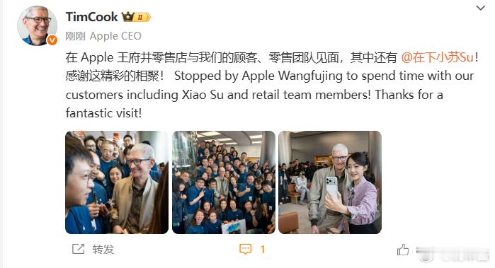 库克又到北京了?没有拿华为小米跟他合影的吗?