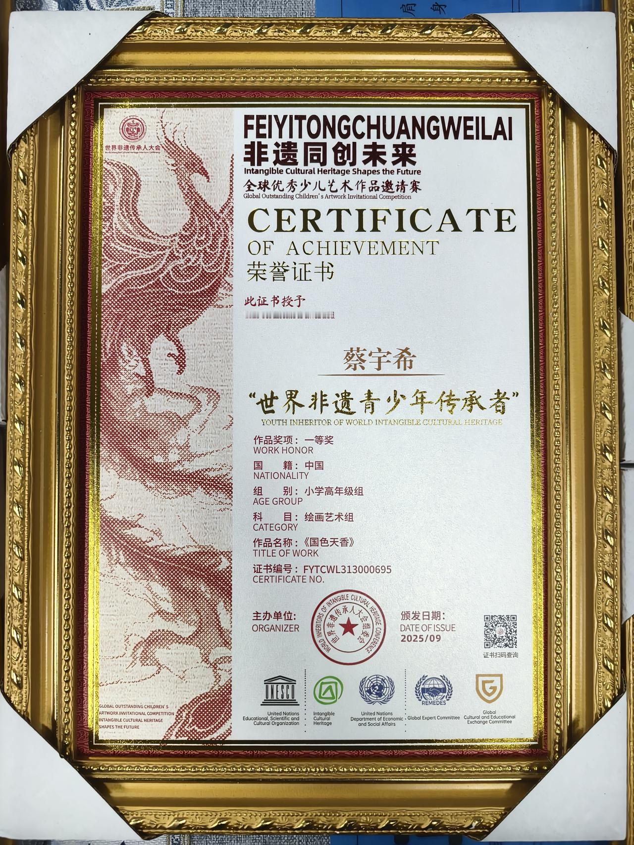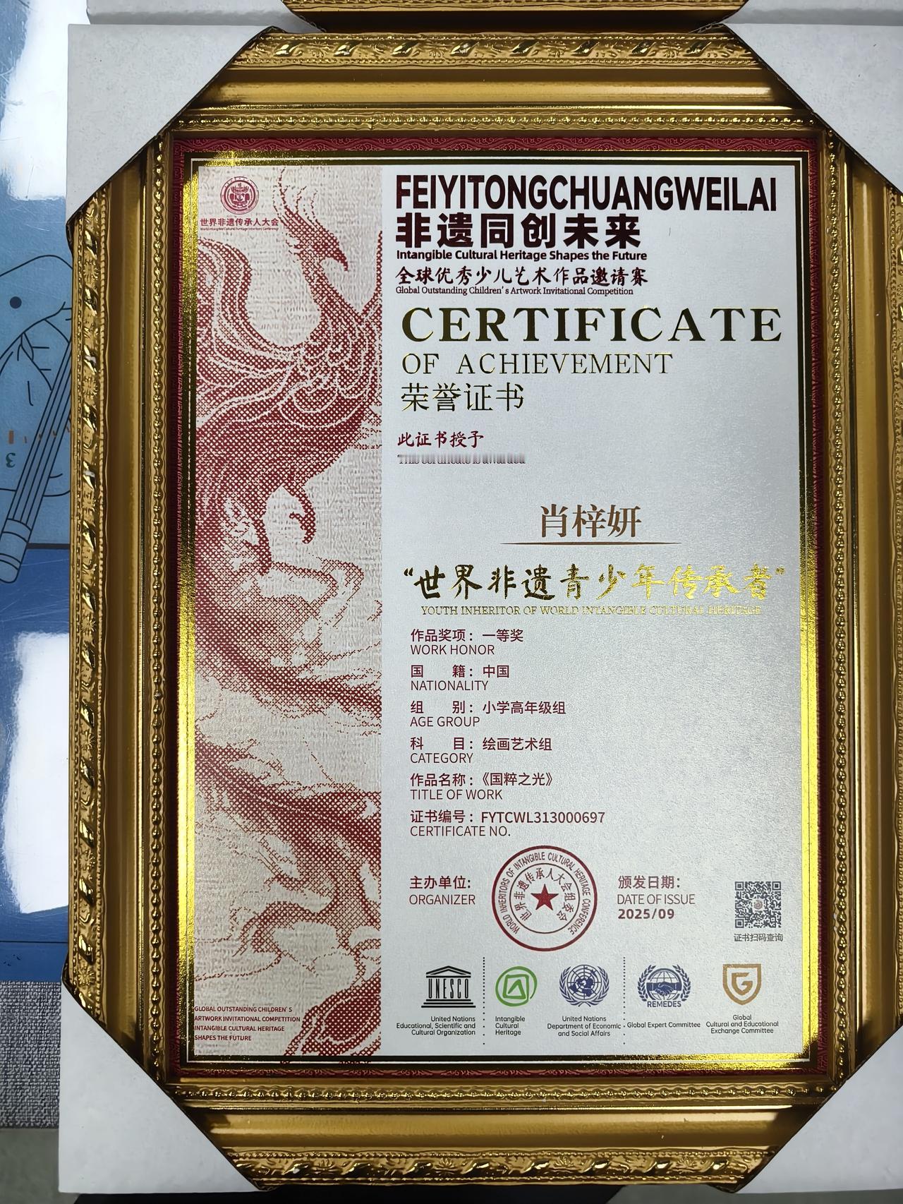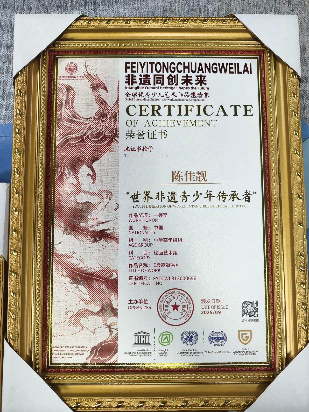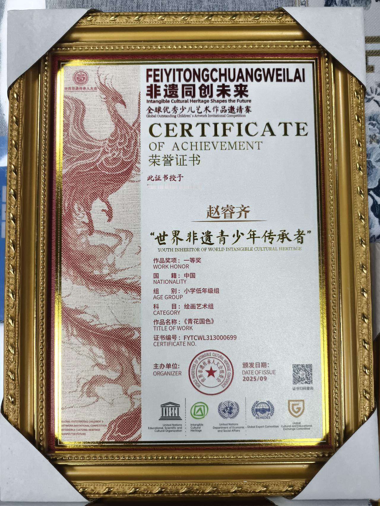 朋友,国际比赛的证书,你有几个? 我的学生已经有了,祝福我的宝贝们,你们永远是老师的骄傲,老师永远以你们为荣。 在“艺海泛舟”的道路上,老师会为你们“保驾护航”,希望你们能走的更远,老师是希望你们能传承老师的“衣钵”,让五千年的中国传统文化在你们手里“发扬光大”,更希望你们能超过老师,成为五千年文化新的“传承人”。