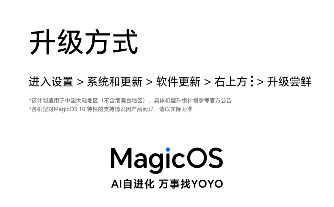 MagicOS10如此多娇,引无数友商竞折腰!我已经提前体验了,真的很丝滑很智能,刚刚宣布公测开启,我又去刷新了一下,果然有新的更新包,毫不犹豫下载升级。还没有升级的荣耀手机用户,可以看下公测机型的升级时间,第一时间升级体验吧……