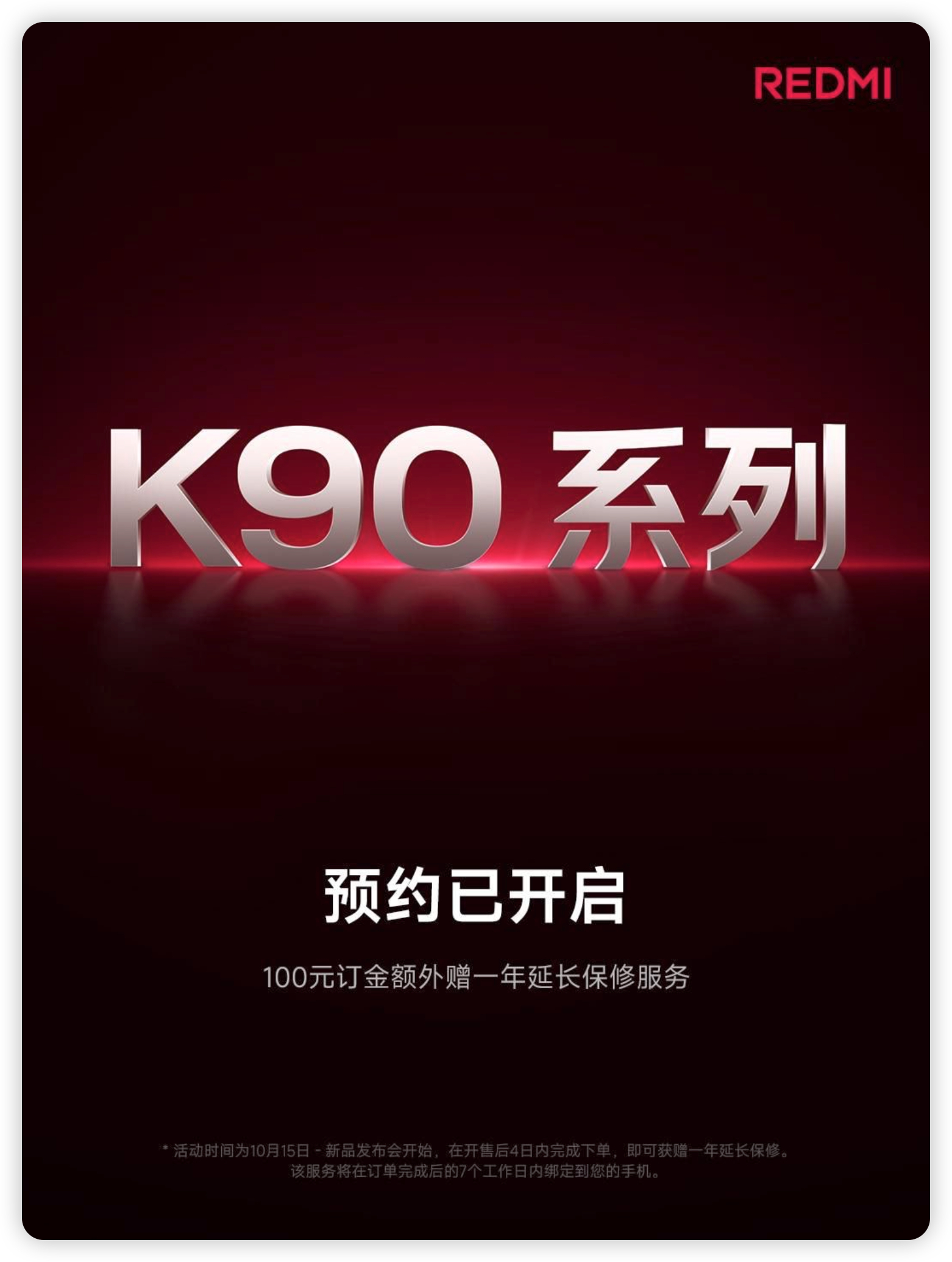 REDMI K90 系列已经支持预约了,我刚看到小米之家店员给我发了海报,说是现在预定可以多送一年延保。