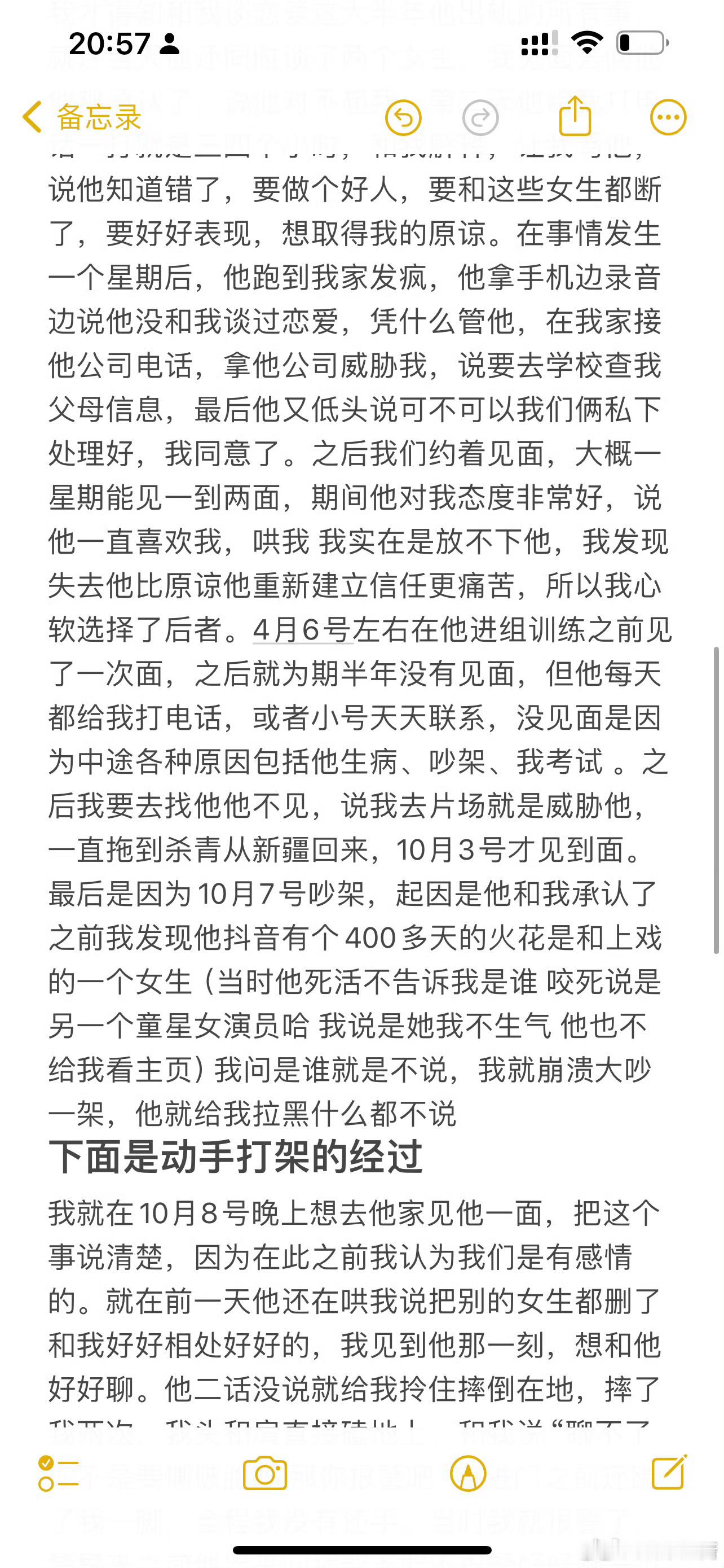 10月8日动手打架,前女友称荣梓衫把自己两度摔倒在地还踹了自己一脚,报👮后,荣梓衫先否认恋情,而后其经纪人称自己是狂热粉丝,到最后荣梓衫验伤并称两人是互殴
