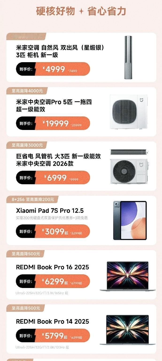 绷不住了,当小米2025双11大促让利20亿的活动出来后,整个市场炸锅了,这优惠力度简直是绝了,手机、家电、生态链产品全都有折扣,不是奔着清库存来的,爆款产品也闪降,科技不是高高在上,而是服务人民的含金量还在上升。 真是应了那句,诚意才是必杀技! 先说手机,折叠屏MIX fold 4下单就省1000,Xiaomi15 Ultra省500,包括中端神机K80至尊也省了200...说句难听的,本来就香,这下补贴后,完全是香饽饽了。 而家电方面直接是相当于掀桌子了,至高4000让利,比如米家中央空调Pro,这可是真金白银的少了,也不是吹捧,就是要把用户宠上天,另外还有洗衣机、冰箱,空调...平时舍不得的,这次通通下本到无法拒绝。其他的像平板,扫地机器人,净水器...,全是真香价。 不过这都是冰山一角,其实看到的和看不到的,小米才是做到了细节上,比如小米服务升级,活动期间,手机,平板,耳机用户,MiCare无忧版保障服务7折优惠,而小米17首销用户还能5折升micare,这样的企业就值得点赞和支持!