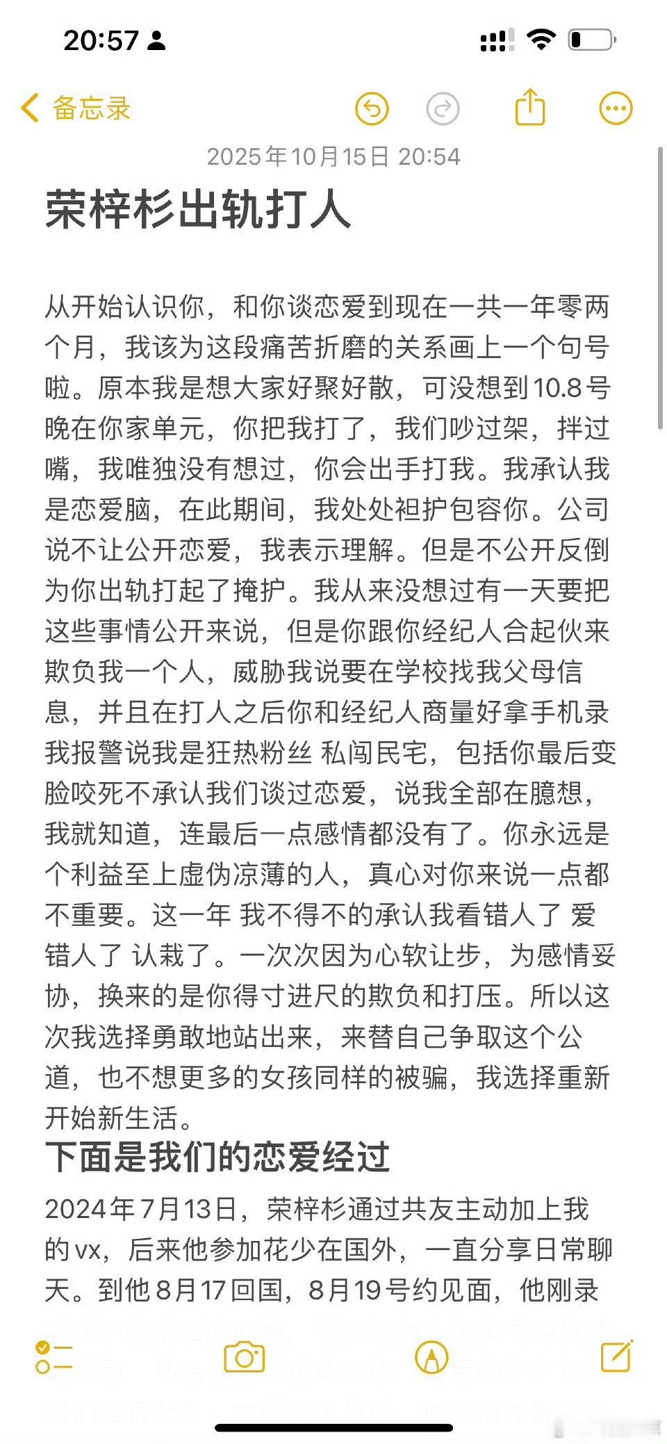 荣梓杉去年刚成年李禹熹称荣梓杉出轨打人 印象里还是《隐秘的角落》里的小孩,一查才知去年刚成年,结果就曝出这么大的瓜。李禹熹晒出立案告知书和诊断证明,控诉被拎摔还遭倒打一耙,这操作可比剧里的剧情抓马多了[吃惊]。