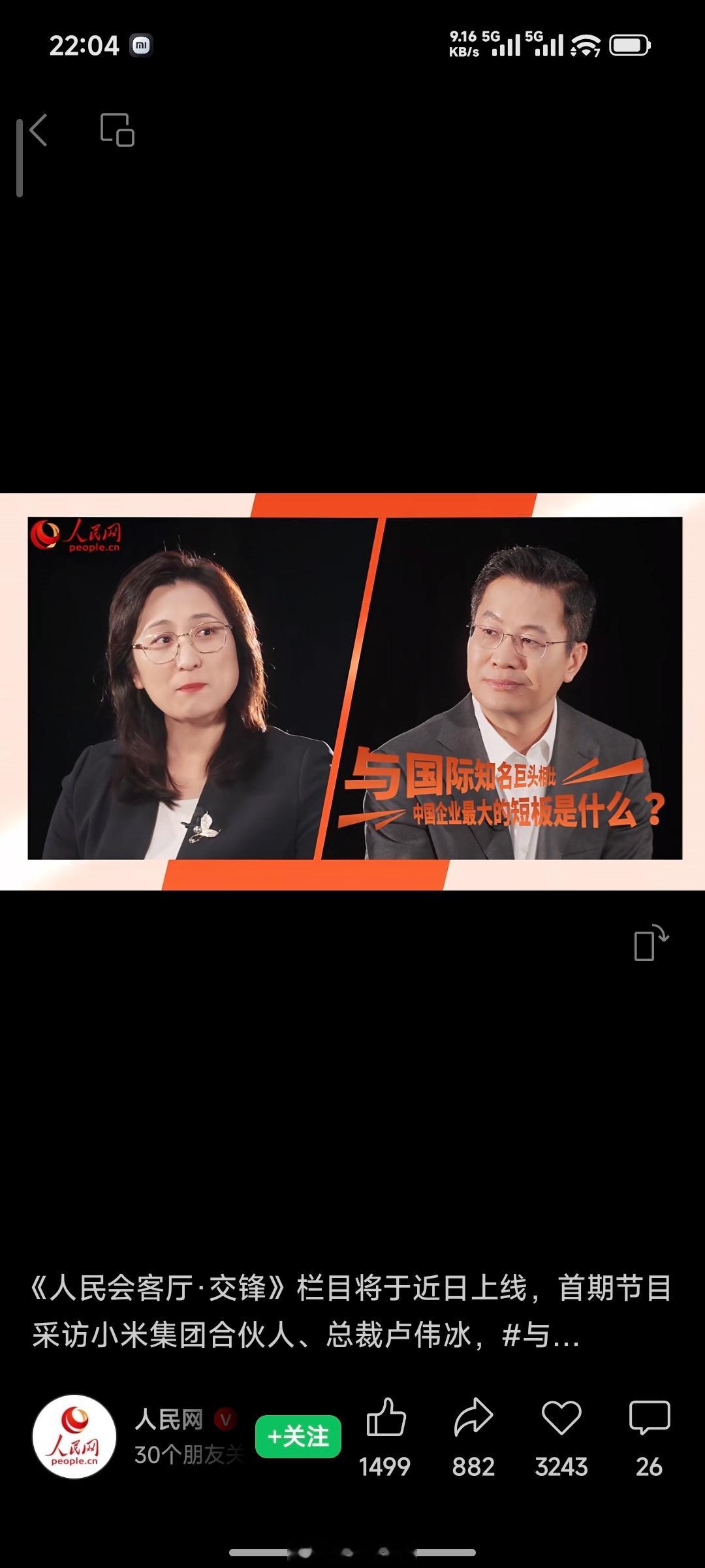 人民网访谈卢伟冰,节目近期会上线[作揖]