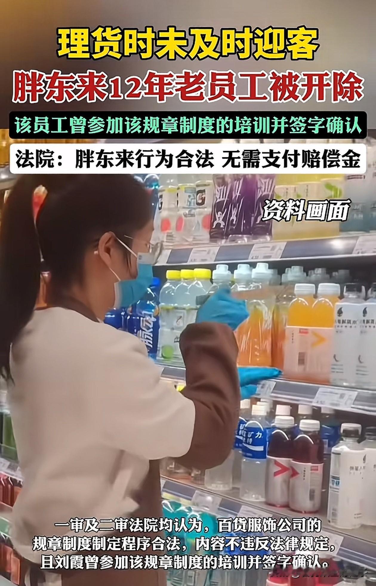 普通打工人真的太难了!一位在胖东来工作12的老员工,就因为没有及时迎客就被开除,先不说员工理货没有及时迎客是否有错? 但就这一点小错误,也不至于开除一个12年老员工吧,而且还不给赔偿,完全是店大不把员工当回事,胖东来的格局实在是太小了! 要是员工在偷懒摸鱼,顾客问她问题不理顾客,还可以理解,人是在理货,忙于其他工作,又没有造成损失,要是给公司带来了严重后果,直接开除没问题! 一点小事扣奖金批评教育就行了,如果是经常这样,达到两次三次再开除,这才是正常的符合人常理的,员工也是人,不可能不犯错的! 之前胖东来不是还招聘犯过错的人,那对待老员工就不能有点包容心,这会让其它员工寒心的,支持这位员工上诉,胖东来赔偿她100万。 您觉得呢!
