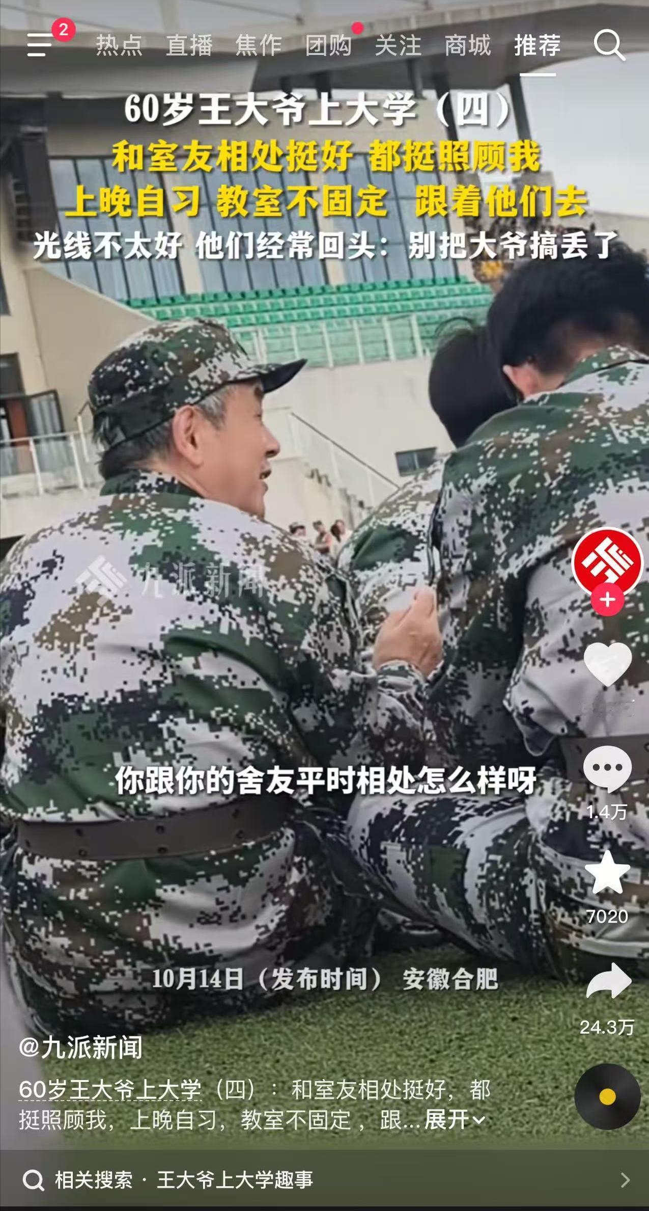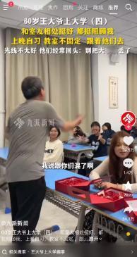 “我就跟着你们混了啊!”60岁王大爷上大学,王大爷说,没想到和室友相处挺好,都挺