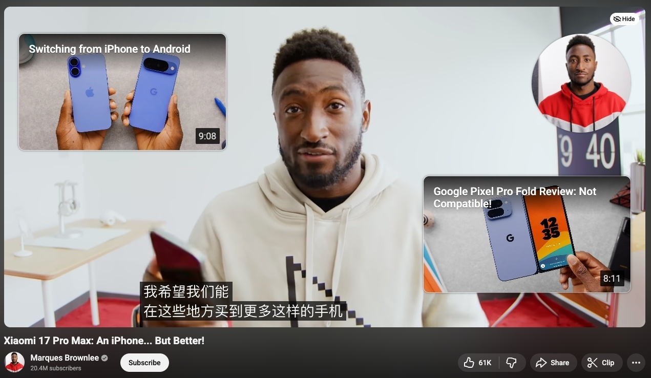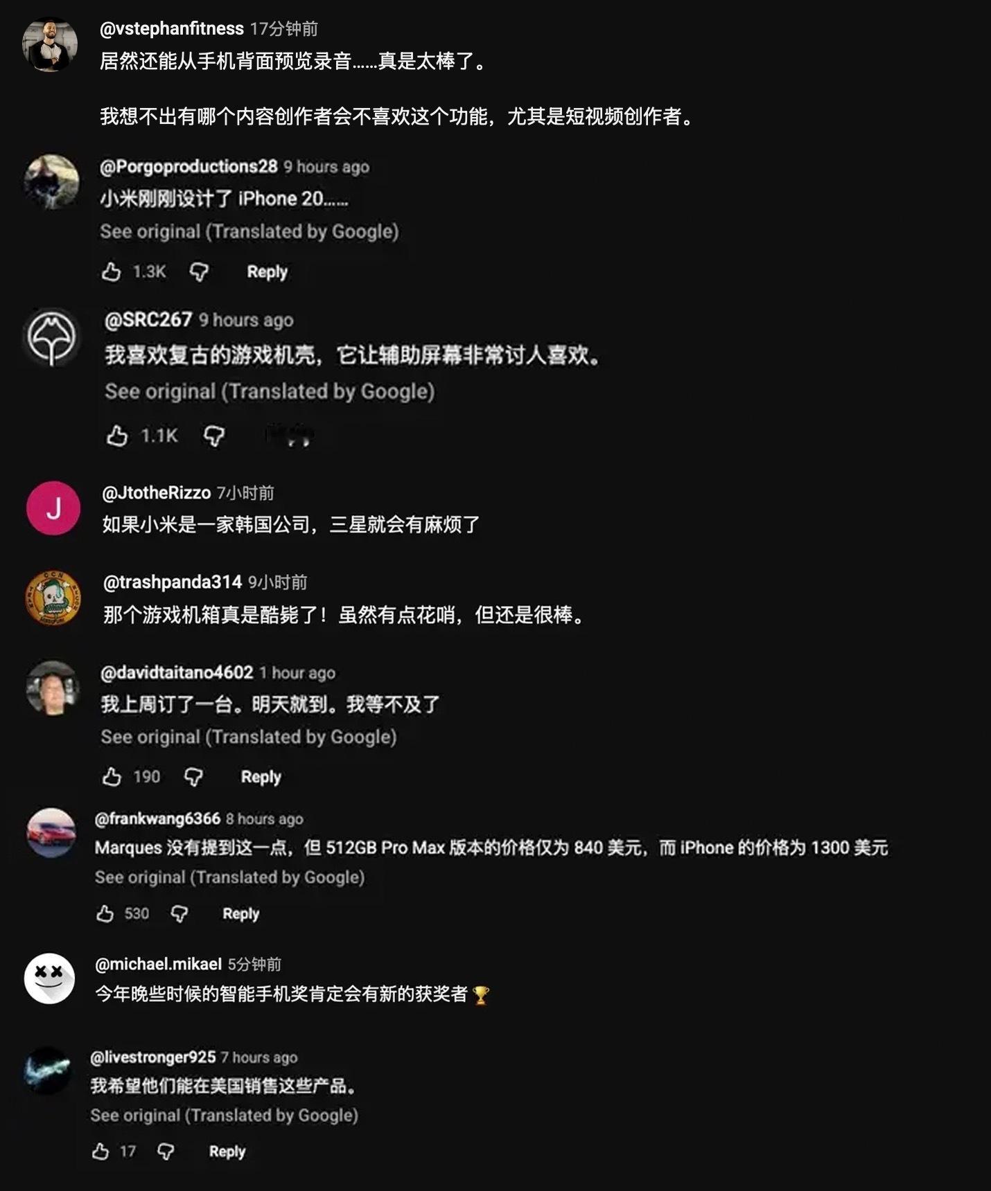 最近国际顶流博主MKBHD还给出了比iPhone还高的评价,背屏设计颇受欢迎,海外网友辣评小米造出了iPhone20,这波妥妥的墙内开花,墙外香![笑而不语]