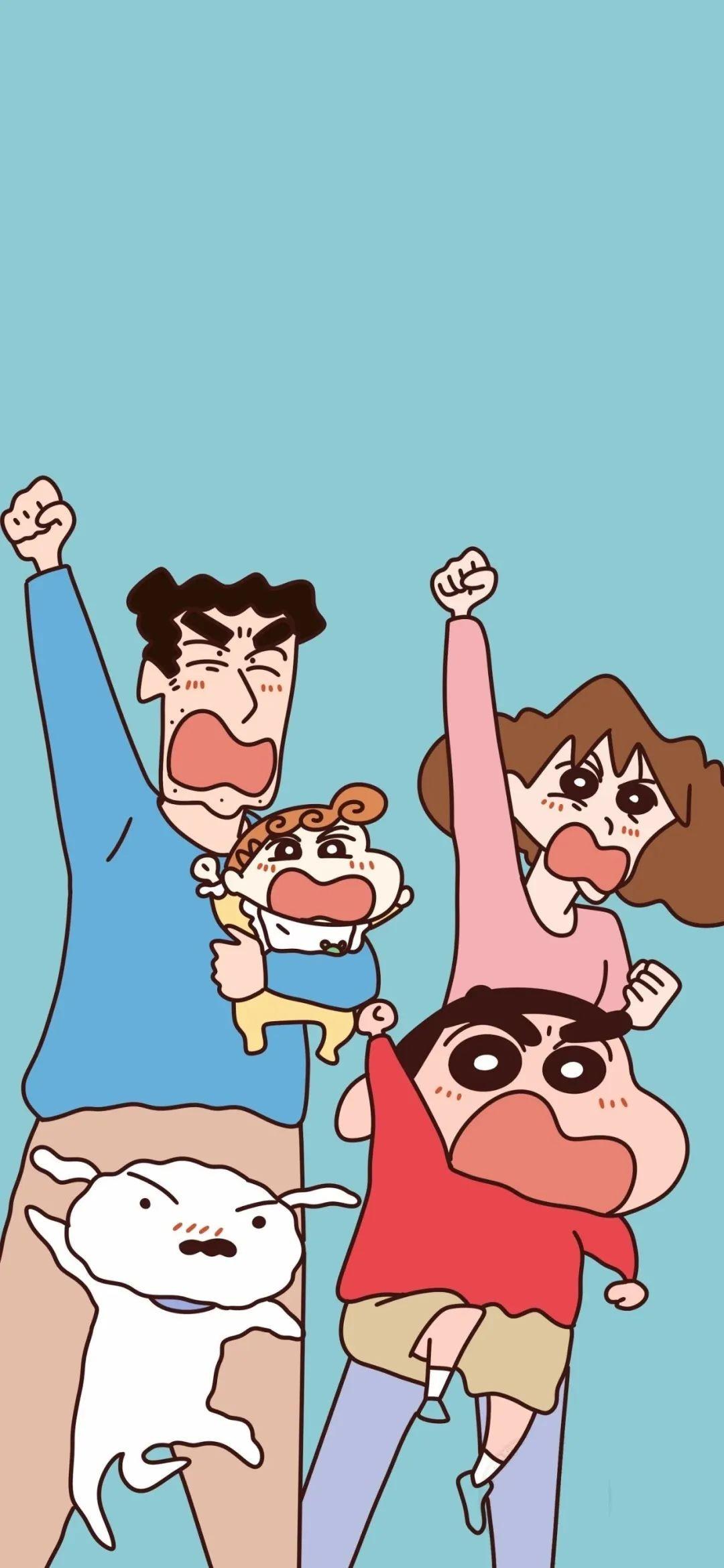 发现一张宝藏壁纸!饱和的黄、粉、青蓝撞在一起,像汽水泡泡噗地冒起。三位卡通角色从