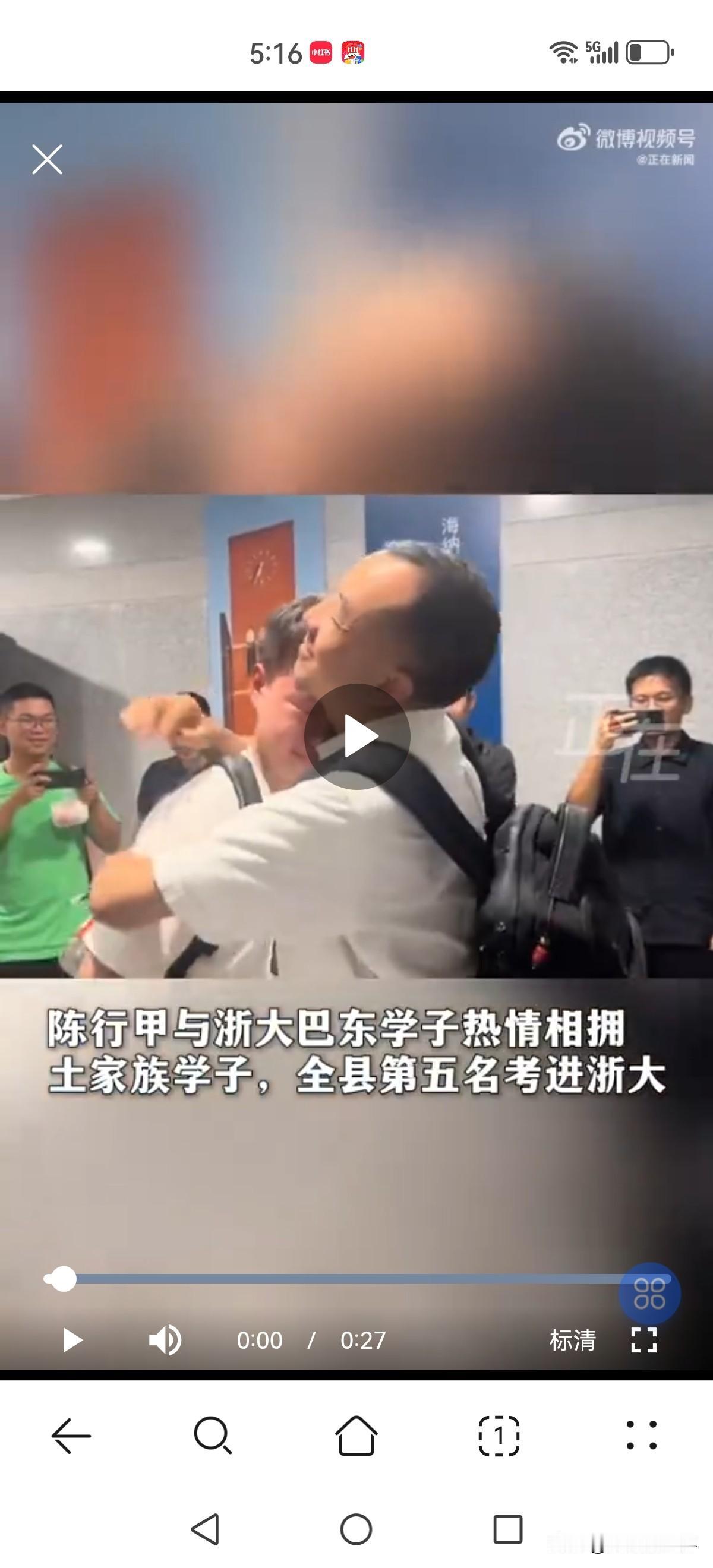 能考上浙江大学的人,泪点那么低吗? 莫怪,这恰恰是至真至纯的流露!想当年陈书记主政巴东县五年,一心为民,两袖清风。即便是离任多年,巴东人民依然记得陈书记的好! 他乡遇故知,特别是如此尊敬仰慕的长辈,情绪激动真情流露这多正常啊!多好的学生!加油!陈行甲 浙江大学