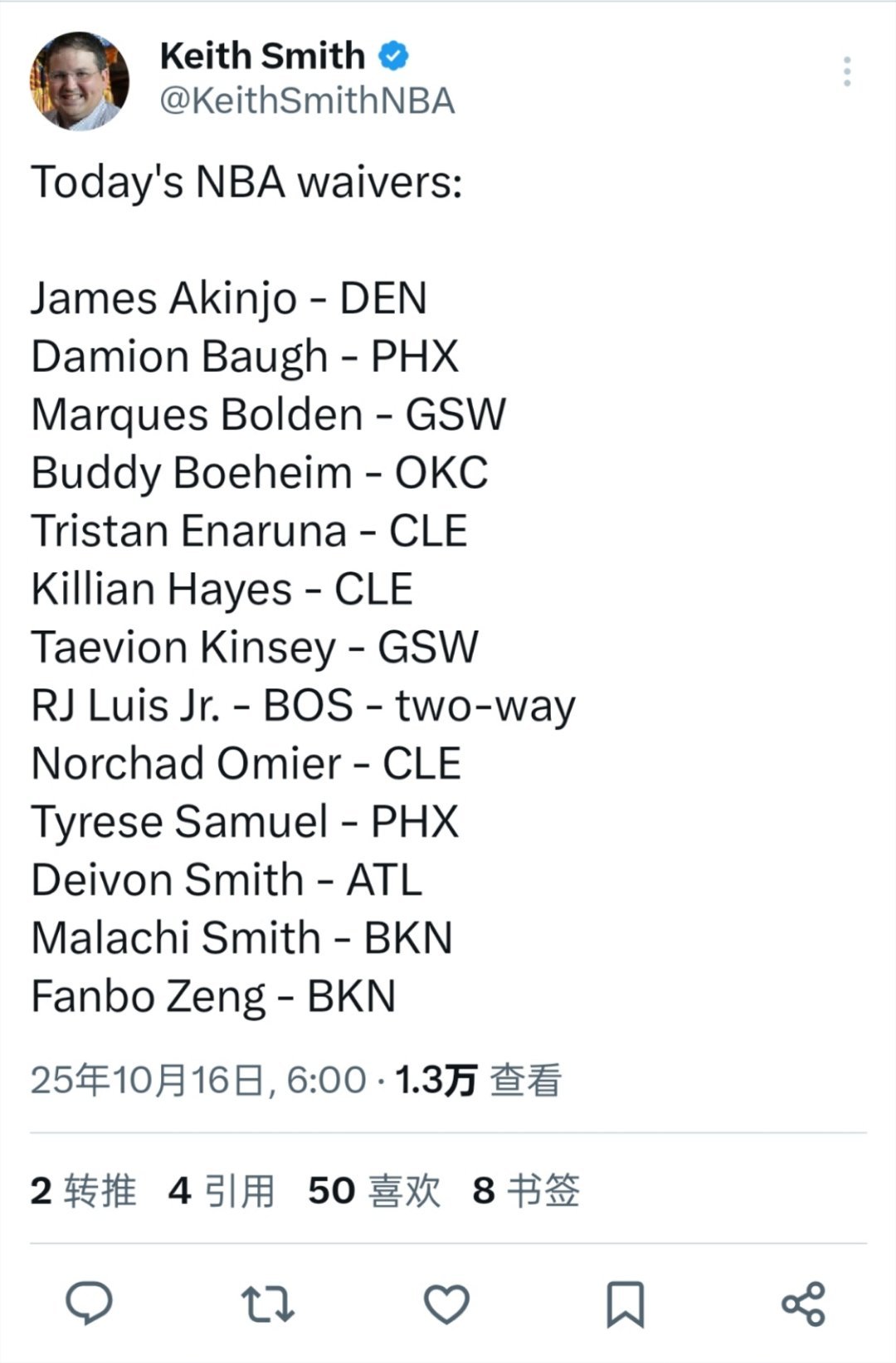 Scotto:篮网裁掉了前锋德鲁-蒂米和后卫达里克-怀特黑德