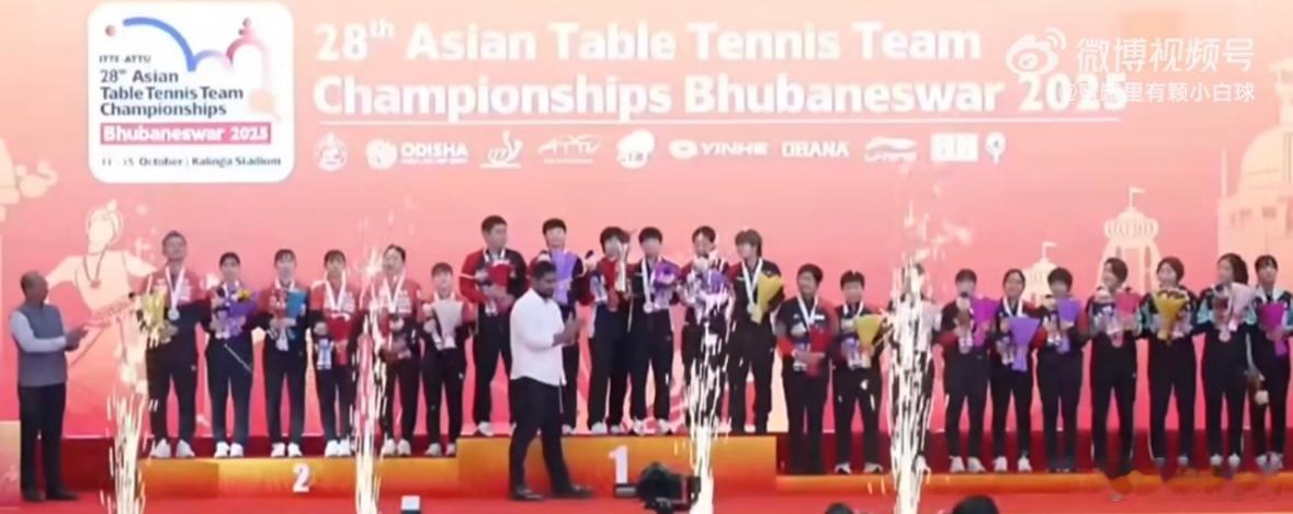 国乒男团女团登上领奖台笑了太强大了,颁奖台都不够站了,虽然在印度拿这个亚锦赛冠军的过程体验差了些,毕竟连林诗栋说花儿有股臭味,着实无语……不过最重要的还是将冠军收入囊中,继续着称霸世界乒坛的事业,大家辛苦了!感觉这次遇到的阻力没有想象中那么大,女子依然傲视群雄,男子有惊无险但也还是有底气,恭喜中国乒乓球队,真正的天团[手指比心]鸣聊体育