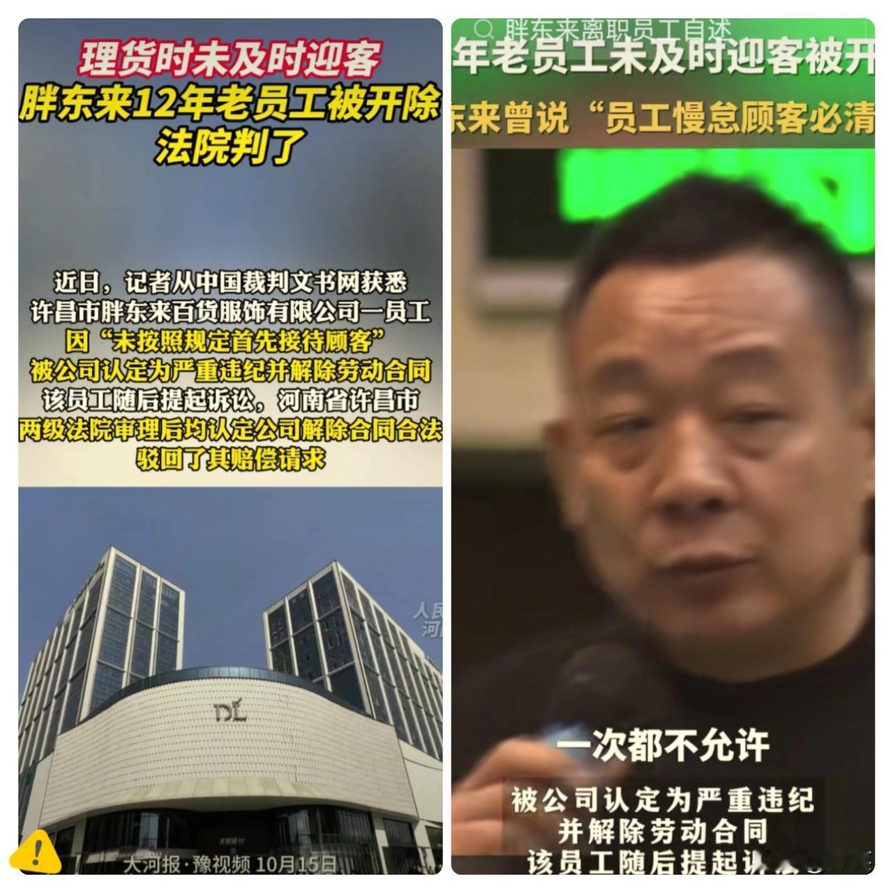 今晚,胖东来9000多名员工估计要失眠了 不是因为要失业了, 而是看到于东来对员工这么狠,让不少人心有余悸! 12年的老员工,就因为没第一时间放下POS机接待顾客,直接被开除,法院两审都判公司合法。我们同事今天都在聊这事儿,新来的年轻人明显紧张了,谁能保证工作时一点疏漏没有? 可细想,于东来一边给员工发饮料、不让上级发脾气,一边对服务失误零容忍,这根本不矛盾。高福利是人情,严制度是根本,他早就说过怠慢顾客必清退。没有铁规矩撑着,哪来胖东来的好口碑? 但话说回来,12年工龄就换不来一次改过机会吗?法理之外,情理的度该怎么握?你们觉得这处罚过分吗?胖东来