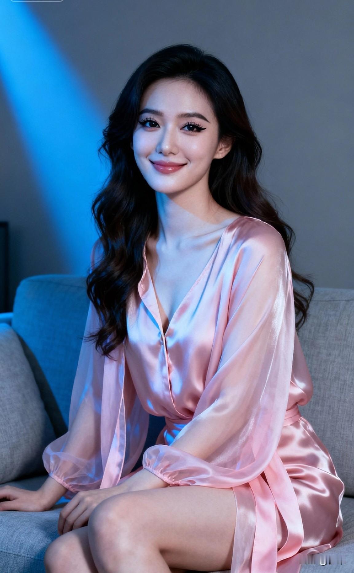 温柔粉色的丝质睡衣,搭配优雅的微笑,尽显女性魅力。