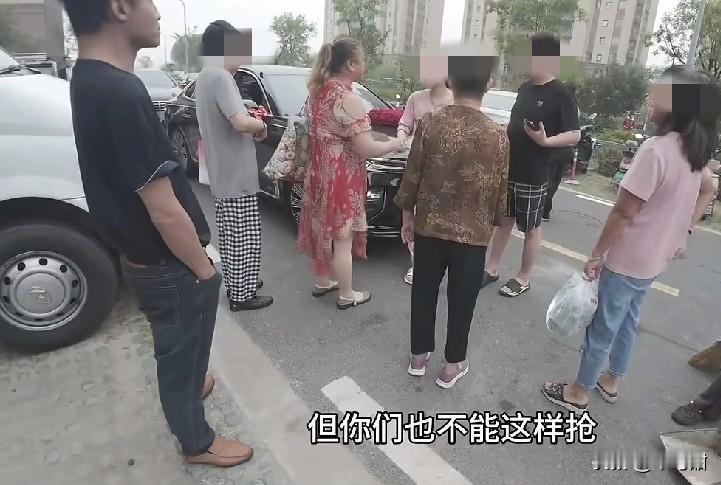 某小区里,又遇到拦婚车要烟的。 一穿睡衣的女子带头,喊来小区群众拦着一辆婚车,扬言,“不拿一条烟,今天走不了”。 还说上一个结婚的人,是小区每人一包烟,满眼都在说那家人的大气。大姐,你是抽不起一包烟了吗? 婚车上下来一位阿姨,拿出烟和糖果分给大家,没想到被人直接全部抢走,这一下惹毛了这位阿姨,指责这群人太不道德了,这是婚事喜事,不能这么瞎搞啊。 这个带头的大姐,还一口一声的喊着对方“大姐大姐,你听我说。。”全程都在表达,你这些不够,要拿一条烟来,她立刻带着小区的人走,她会安排这些人,他们都听她的。 看出来了,原来这才是小区霸主啊,妥妥的女裁范,可惜那边也不是吃素的主,小区的人很多也看不下去,拉着穿睡衣的女子走了,算了。 结果这女的不依不挠喊着叫新郎下来道歉,她有白事,这女的嘴太损了,人家大喜事,她在这边没拿到烟就喊自己有“白事”,都是一个小区,低头不见抬头见的。 最后楼上有人看不下去,给泼了一盆水,一个喊着要打110,一个喊着打120。 (图片来自网络视频)
