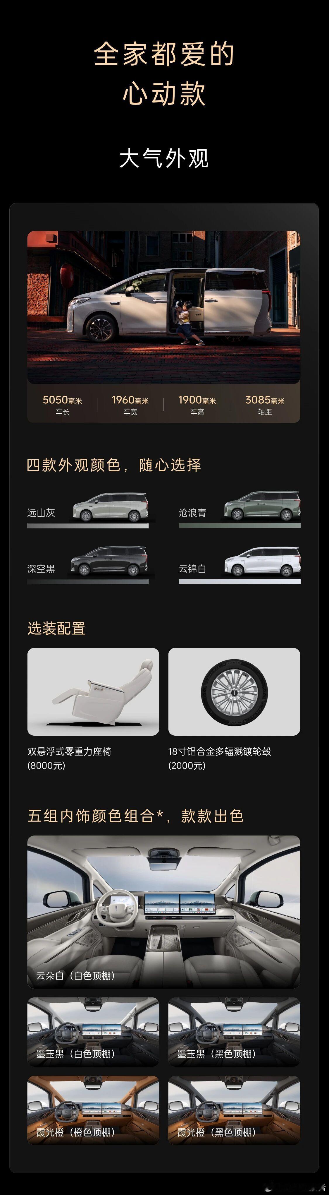 车身尺寸方面,长宽高分别为5050/1960/1900mm,轴距3085mm。