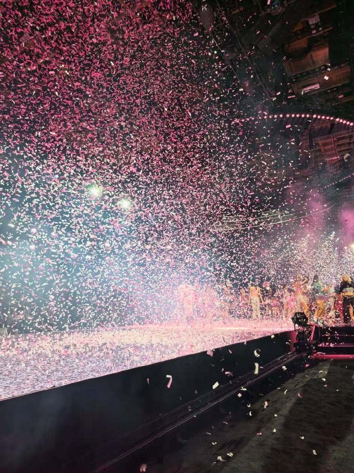 杨幂 ins 晒维秘现场彩带啦!维秘现场的璀璨灯光下,她抓着彩带的瞬间被定格,时尚感满分~杨幂ins晒维秘现场彩带杨幂维秘现场抓彩带