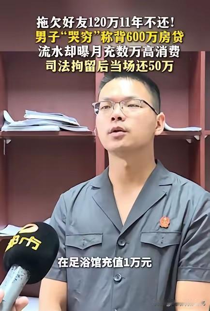 湖南长沙的段先生因好友彭某“结婚买房”急需,出借120万元,口头约定两年归还。然而11年间,彭某分文未还,本息滚至198万元。 段先生多次催讨无果后,2025年将其诉至法院。彭某庭审中哭穷,称房贷600万无力偿还,但法院调查发现其每月在高端足浴、台球厅消费超万元,近期更花费2.98万元给车贴膜,预存水果店会员5000元。 执行法官当场出示高消费证据,彭某仍狡辩合理开销,法院遂启动司法拘留程序。 押往拘留所途中,彭某慌称立即还钱,最终转账50万元并签订季度还款30万元的协议。这场11年催债战以老赖拘留所门口认怂告终,暴露其欺软怕硬的心态。 彭某这老赖就是装穷:有钱给车贴膜、去高端足浴花钱,偏偏不还欠人的198万,还演苦情戏说自己还不起房贷。直到法院要拘留他,才立马怂了,又还钱又签还款协议,说白了就是欺软怕硬,法律一较真他就怕了。 段先生当初没让彭某写借条,要不是法院查到彭某的高消费证据,这事还不好办。所以大家记住,不管多熟的人借钱,都得留个心眼,转账时备注“借钱”,平时催债的聊天记录也别删,这些都是证据。 彭某高消费这么久,为啥之前没被发现?说明现在查老赖消费还不够及时,要是那些高端场所能多配合盯着点,老赖也没法这么潇洒。 这事不是简单的借钱不还。跟熟人打交道,也得讲规矩,不能光靠面子。对付老赖就得用法律治,不然谁还敢放心借钱?只有让老赖知道赖账没好果子吃,大家之间的信任才不会被破坏。