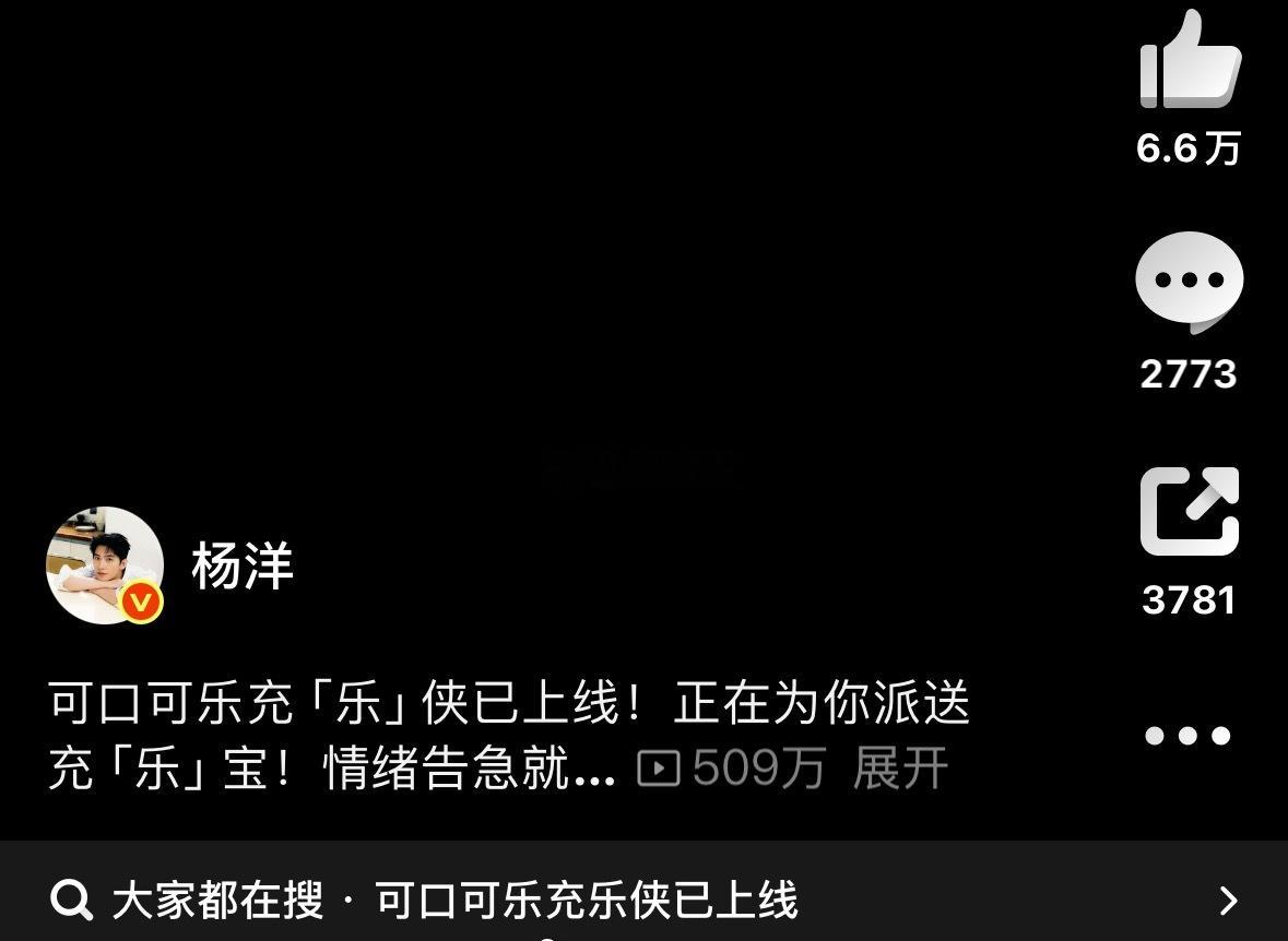 你们是多想杨洋,刚发的可口可乐视频20分钟播放量500多万