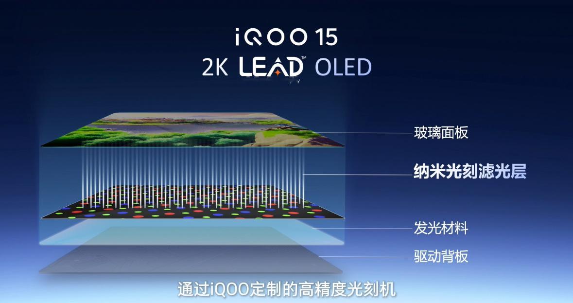 iQOO15用了一块2K LEAD OLED屏,也就是三星珠峰屏。采用全球首款商用无偏光OLED技术,还拿了SID的年度最佳显示奖。