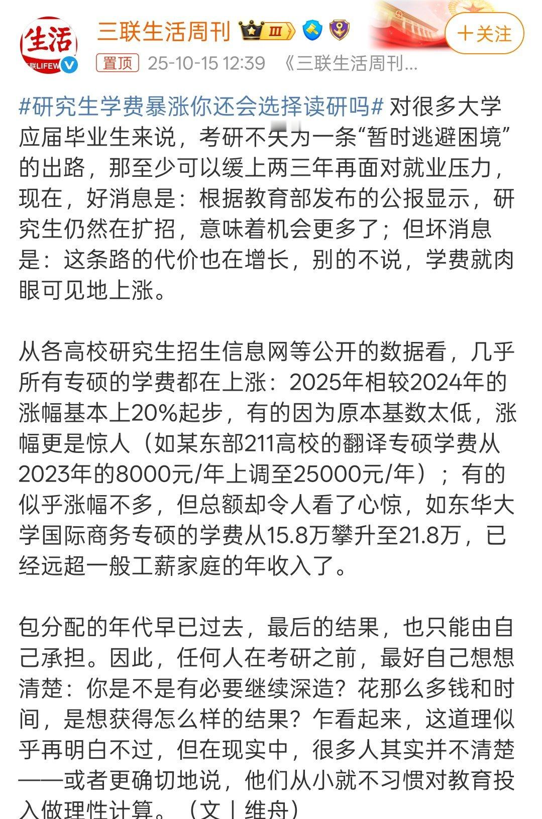 研究生学费暴涨你还会选择读研吗不光是研究生学费在涨,大学生的学费也不同程度的上涨。有不少家长表示还不如孩子们早点进入社会早点锻炼自己。