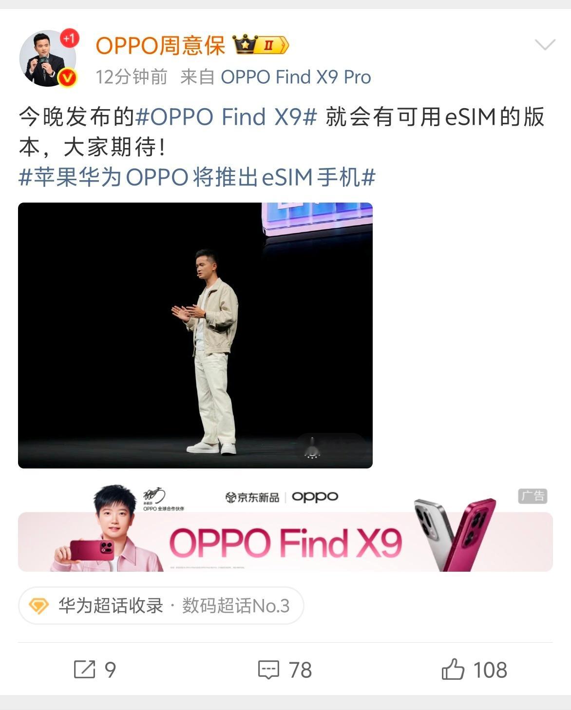 苹果华为OPPO将推出eSIM手机我擦!我说一说OPPO Find X9 系列会成为国内首款支持eSIM的机器[偷笑][偷笑],期待住了!
