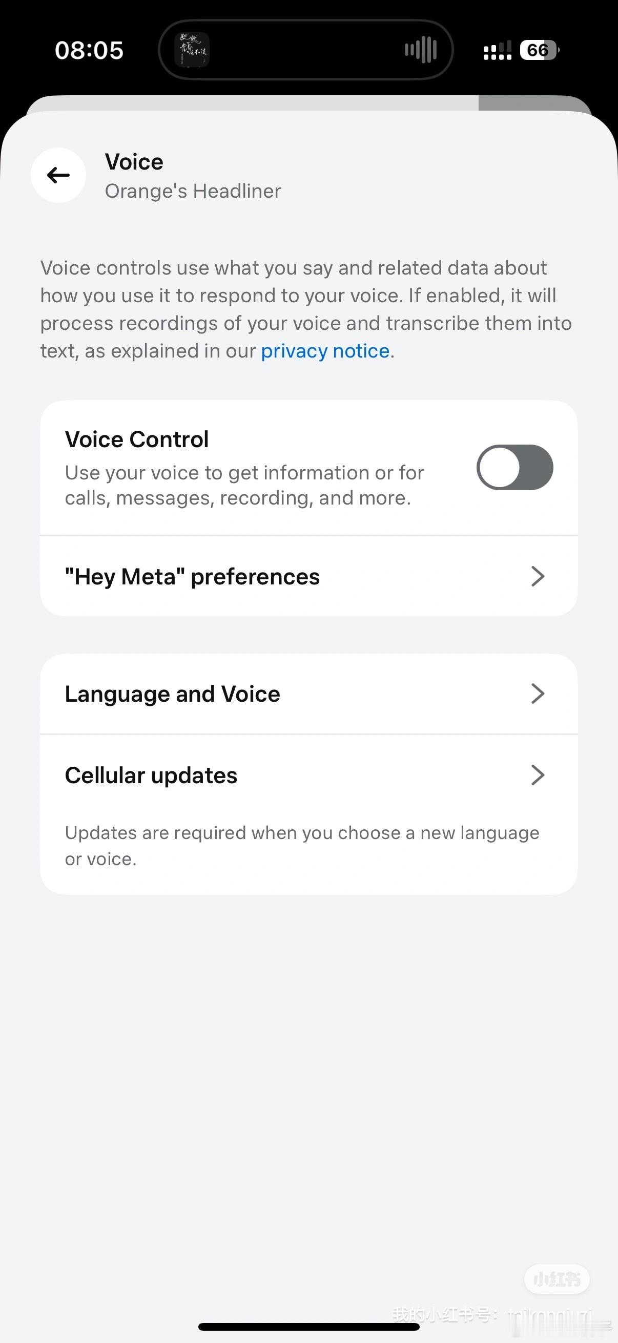 2、在Meta AI系统设置里,把「语音唤醒」功能关闭,这样麦克风就不用实时捕捉唤醒词了,当然拍照听歌都是正常的。