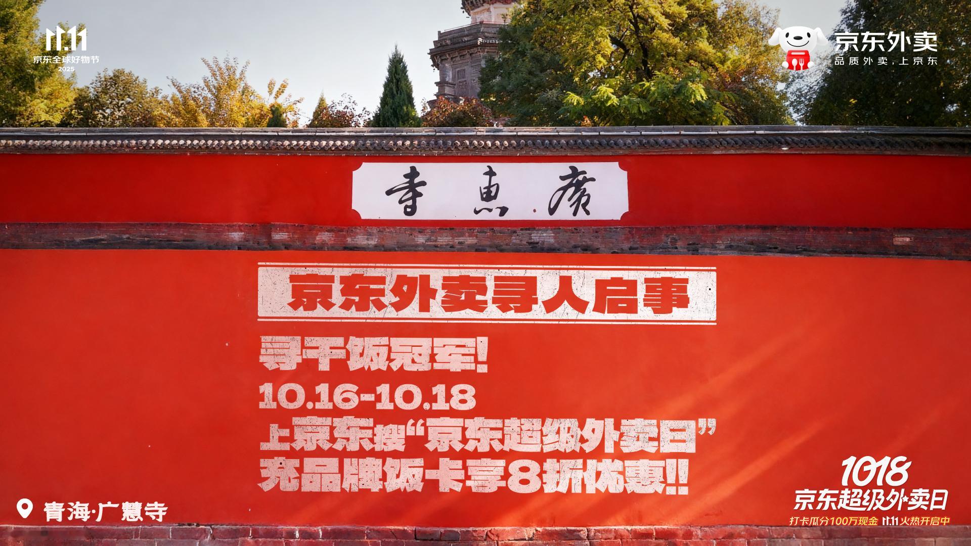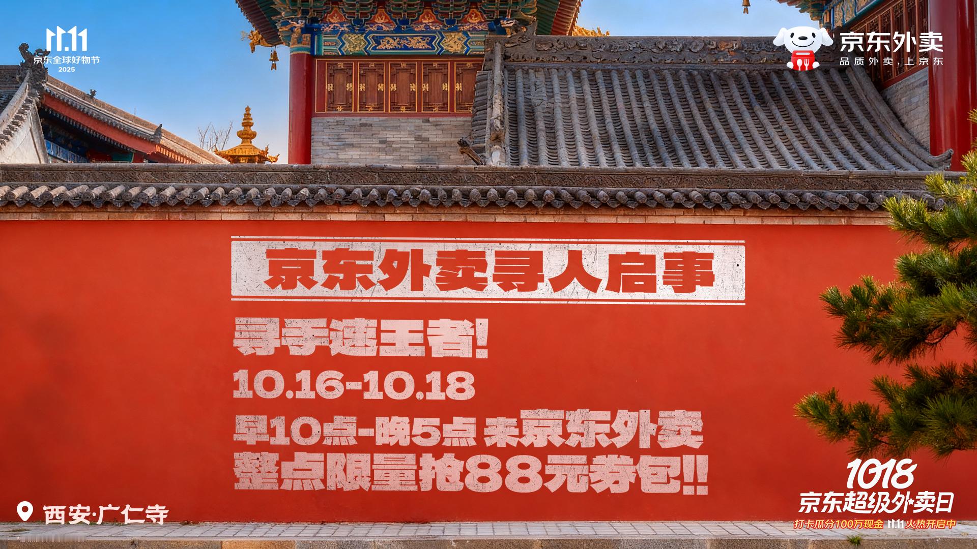 吃货界大地震!红墙被“京东外卖寻人启事”占领,原来是召唤咱们去领福利!10月16