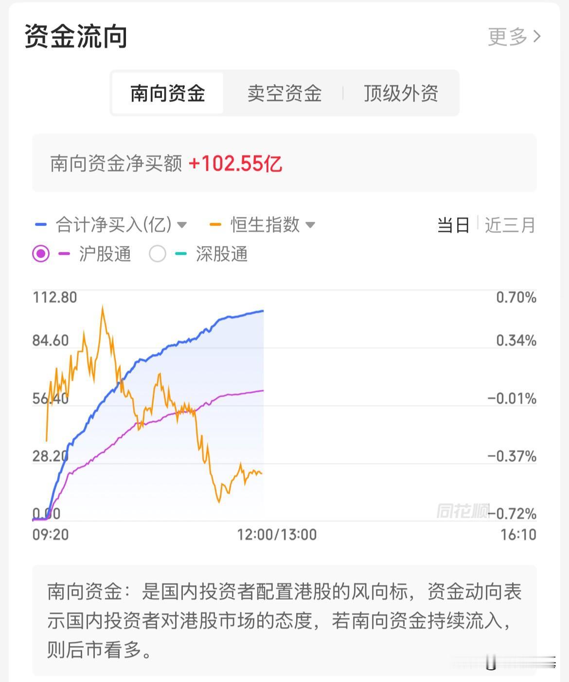 技术性反弹?内资半天爆买超100亿港元,港股指数全线冲高回落,恒生科技跌幅1.37%,又回到6000点之下了 港股现在真是退多进少啊,反弹一日之后就没有上去的动能了,南向资金半天买买买,都买过100亿港元了,指数依然全线走弱, 恒生指数回落26000点之下,恒生科技回落6000点之下,科技股中芯国际跌幅1.84%,机器人概念三花跌幅4.10%,昨天大涨12%,昨晚8点澄清大额订单消息, 港股创新药连续两个交易日反弹,中国中药涨幅4.51%,凯莱英涨幅4.39%,信达生物涨幅2.86%, 昨晚美联储理事米兰说,贸易的不确定性使得降息变的更加迫切,美股市场的流动性在美联储未决定10月降息之前,已经率先敲响了流动性“紧张”的信号,美联储的准备金已经跌破3万亿美元了、逆回购工具用量接近四年以来新低, 恒生科技10月以来累计跌幅超7%,资金从做多开始变的谨慎和观望,随着现货黄金、白银等贵金属的持续强势上涨,投资者对事件的不确定性疑云依然难消, 只能等待月底事件真正明朗化了,再做决定了。