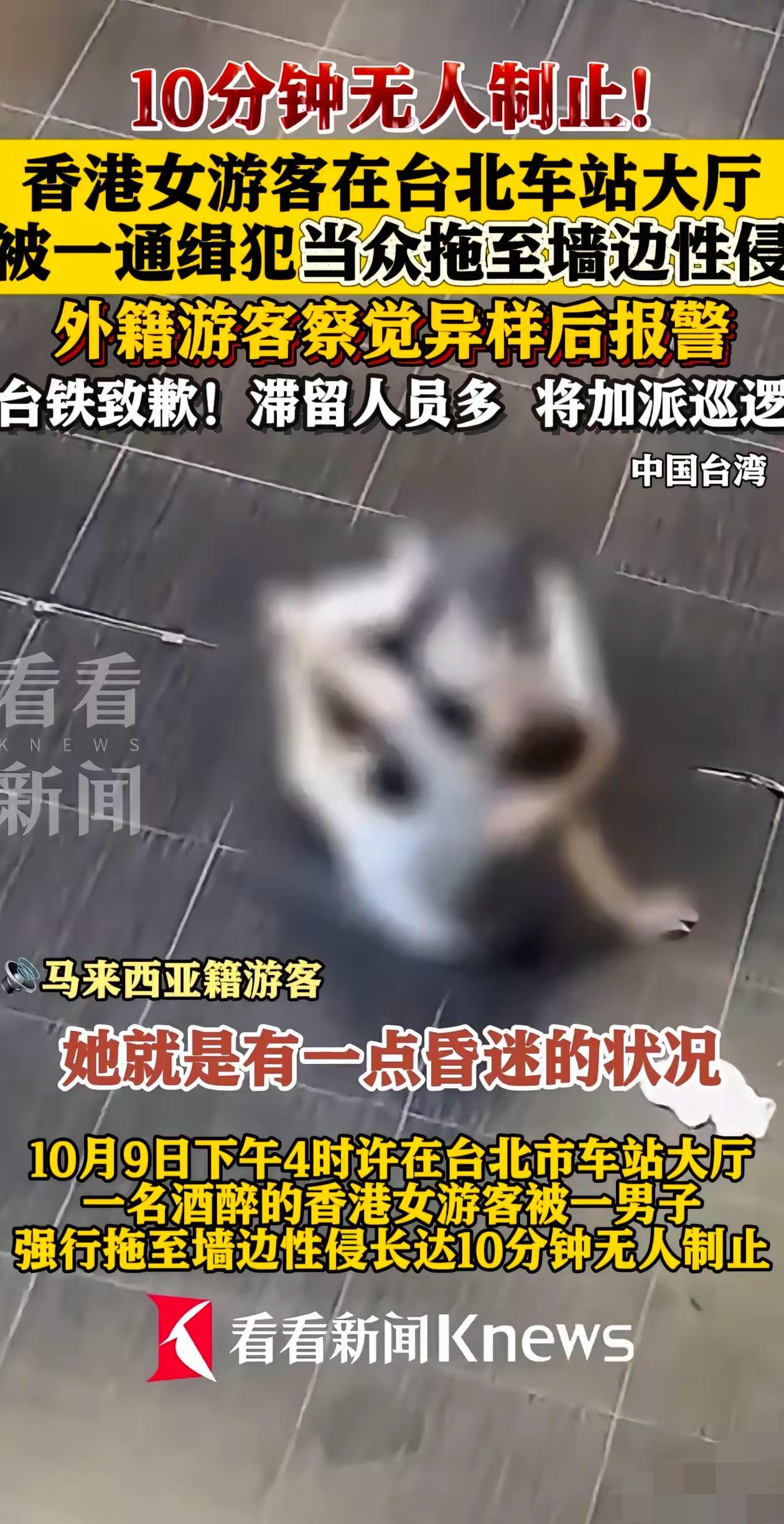 香港女游客在台北车站遭性侵10分钟, 最刺眼的从不是熟人作案,是全场沉默里只有外籍游客敢报警。这哪是偶然,分明是漏洞堆出来的“恶果”。 被通缉的盗窃犯能装街友在车站长期晃荡,就因为安检没和通缉系统联网,谁都查不出来。监控室和巡逻的人跟“隐身”似的,眼睁睁看着暴行发生。 事后加派巡逻、禁饮酒都是表面功夫。真正的问题是,安保只防陌生人,却漏了熟人作恶;旁观者等着别人出头,把“冷漠”当成自保。