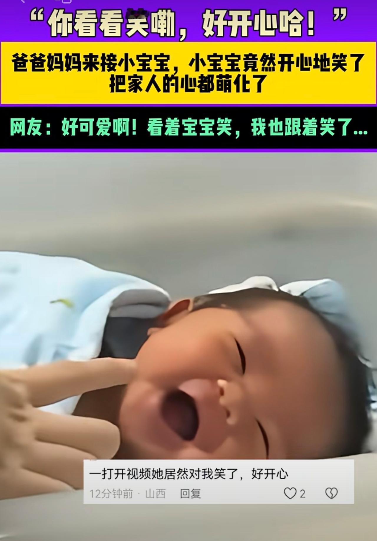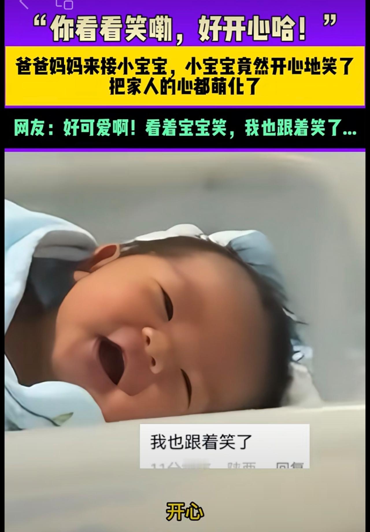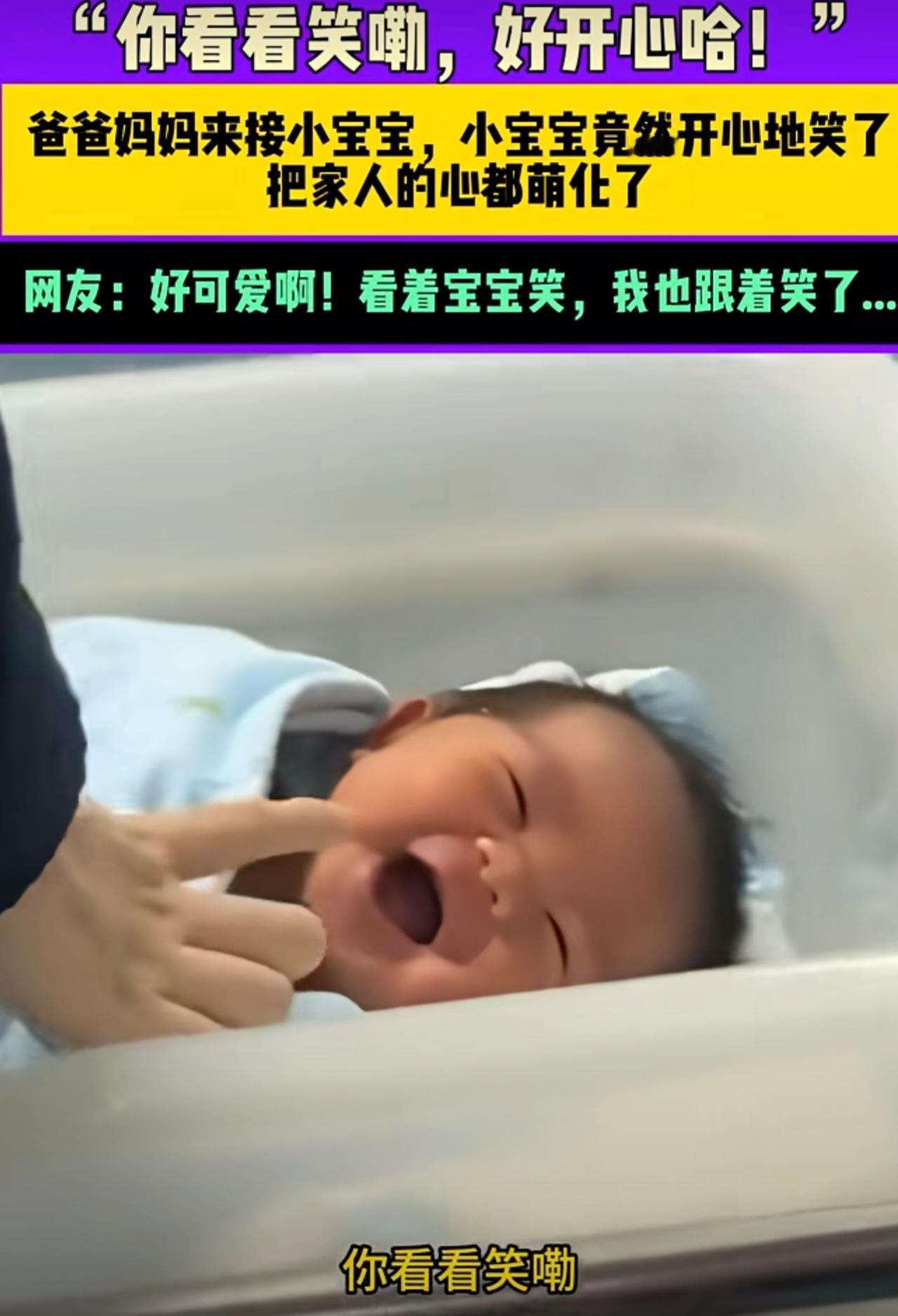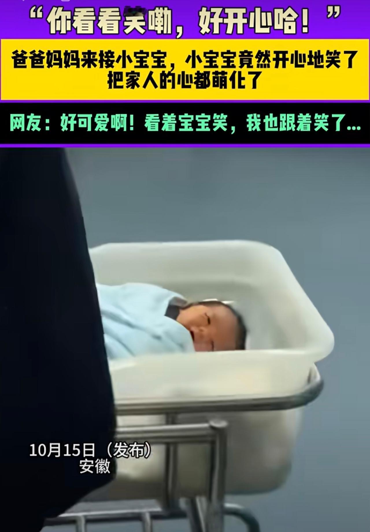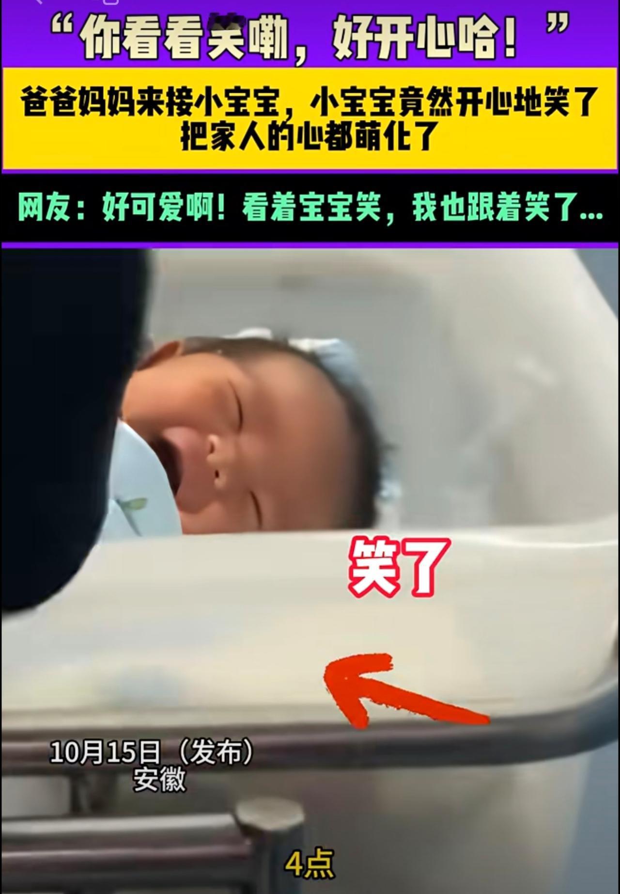 10月15日(发布),安徽,“你看看笑嘞,好开心哈!”爸爸妈妈来接小宝宝,小宝宝竟然开心地笑了,把家人的心都萌化了,网友:好可爱啊!看着宝宝笑,我也跟着笑了...