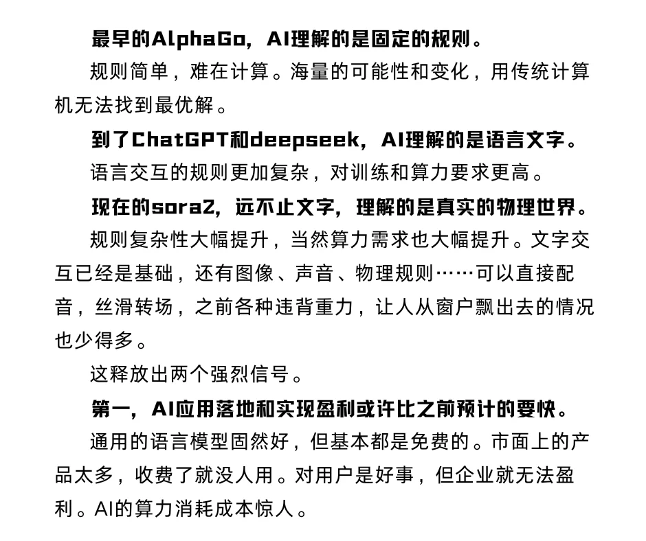 第一,AI应用落地和盈利或许比之前预计的要快。
