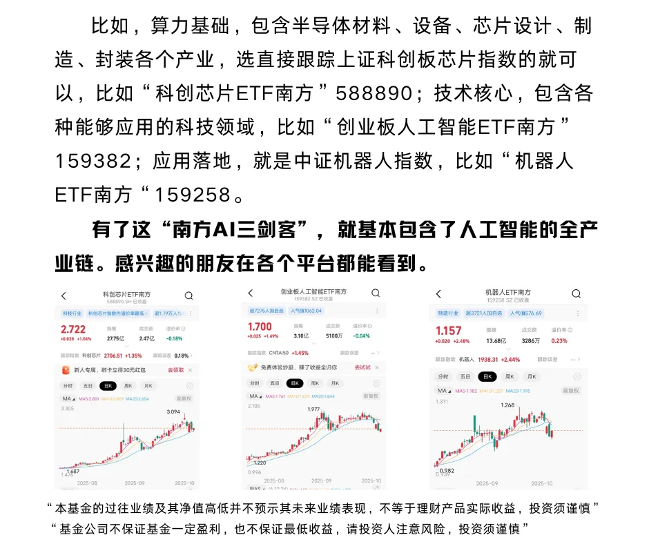 理财 财经知识 投ETF指选南方 南方基金 创业板人工智能ETF南方创业板 科技 南方基金芯片科创芯片ETF南方 机器人机器人ETF南方AI