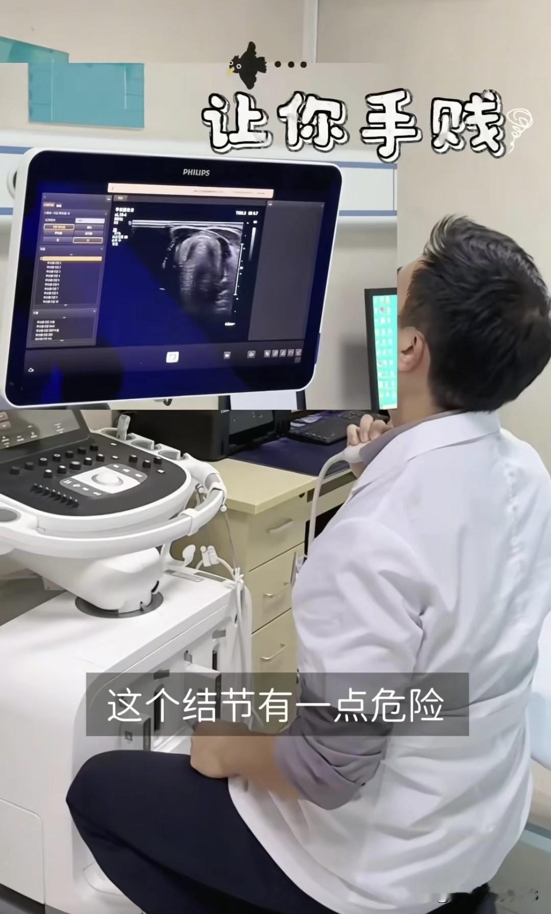 医生给自己做甲状腺科普,结果把自己“科普”上手术台了 一开始他还信心满满,声音洪亮地给大家介绍甲状腺,指着那个亮亮的环说这是背膜。结果看着看着就不对劲了,这儿有小结节,那儿也有小结节,还有钙化灶,而且边界形态还不好。 越看他声音越弱,最后直接匆匆结束,喊着“快带我去检查”!这个视频之后作品到今天也没有更新。对此你怎么看[泪奔]