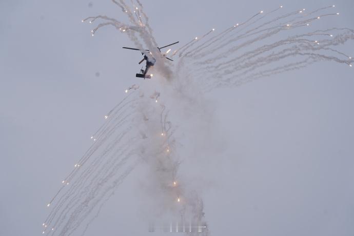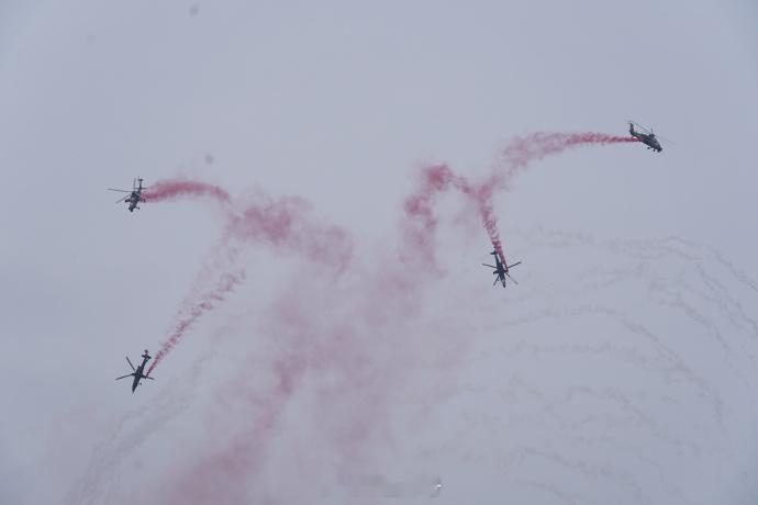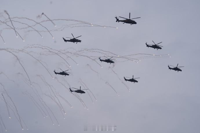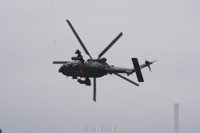 【解锁新成就!直-20T首次亮相直博会近距离看直20T太酷了】第七届中国天津国际直升机博览会于10月16日至10月19日在天津举行。在开幕式的飞行表演环节,陆军“风雷”飞行表演队以七机通场飞行拉开帷幕,先后向观众演示了双机对冲、四机开花等多个课目的特技飞行动作,充分展示了陆军航空兵部队转型建设和实战化训练成效。其中,直-20T是首次参加直博会为观众带来飞行表演。(黄雨桥 王一帆 孙彩宇)