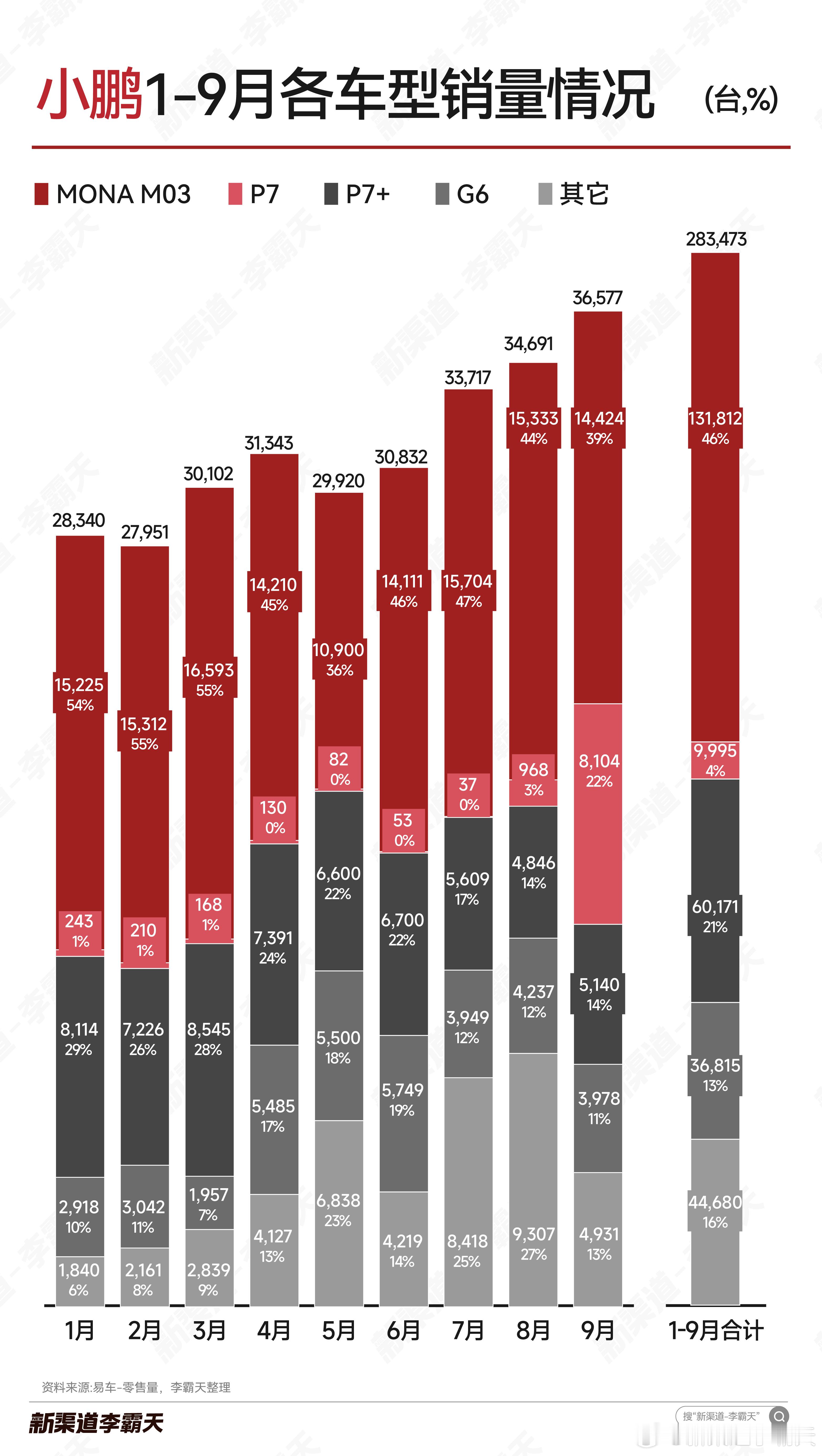 新P7上市后反响不错,首月销量突破8千,占比跃升到22%