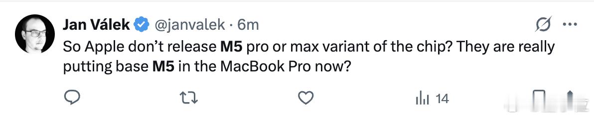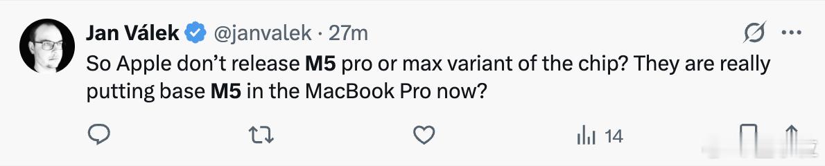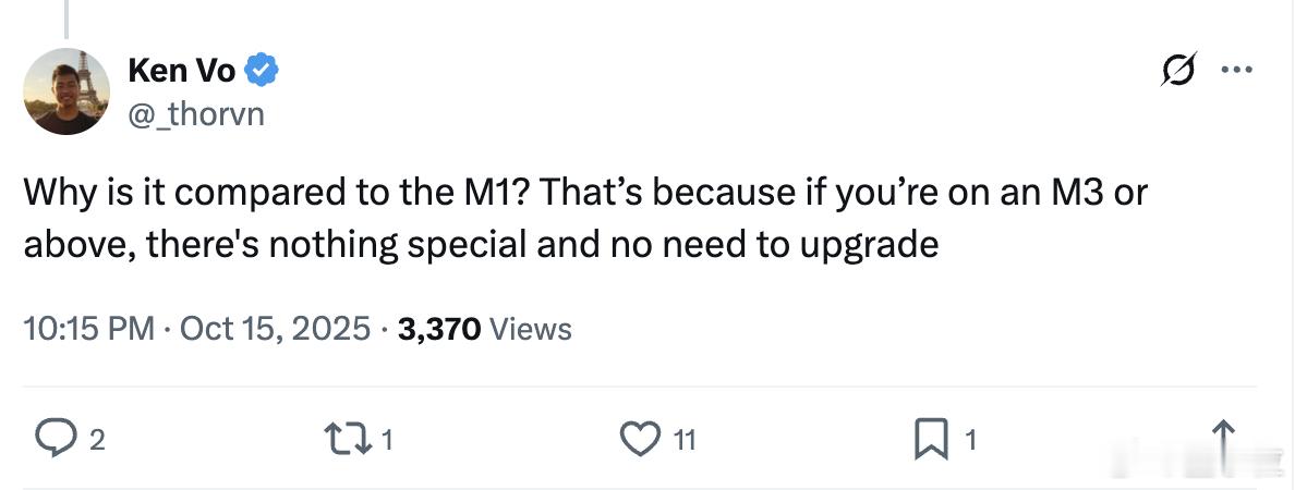 - 自己看了发布会买了M5 MacBook,结果性能还不如同事两年前买的M4 Pro……