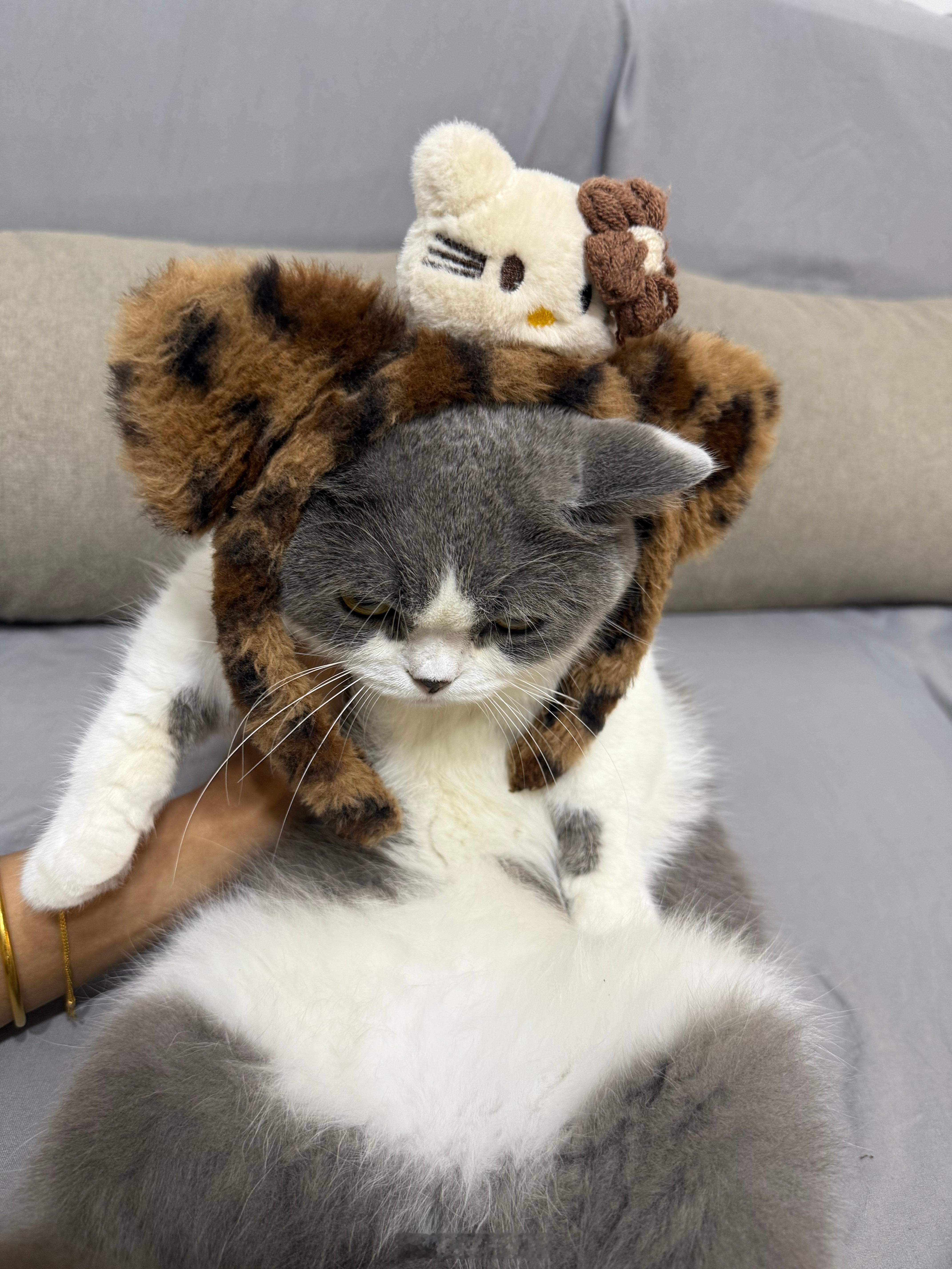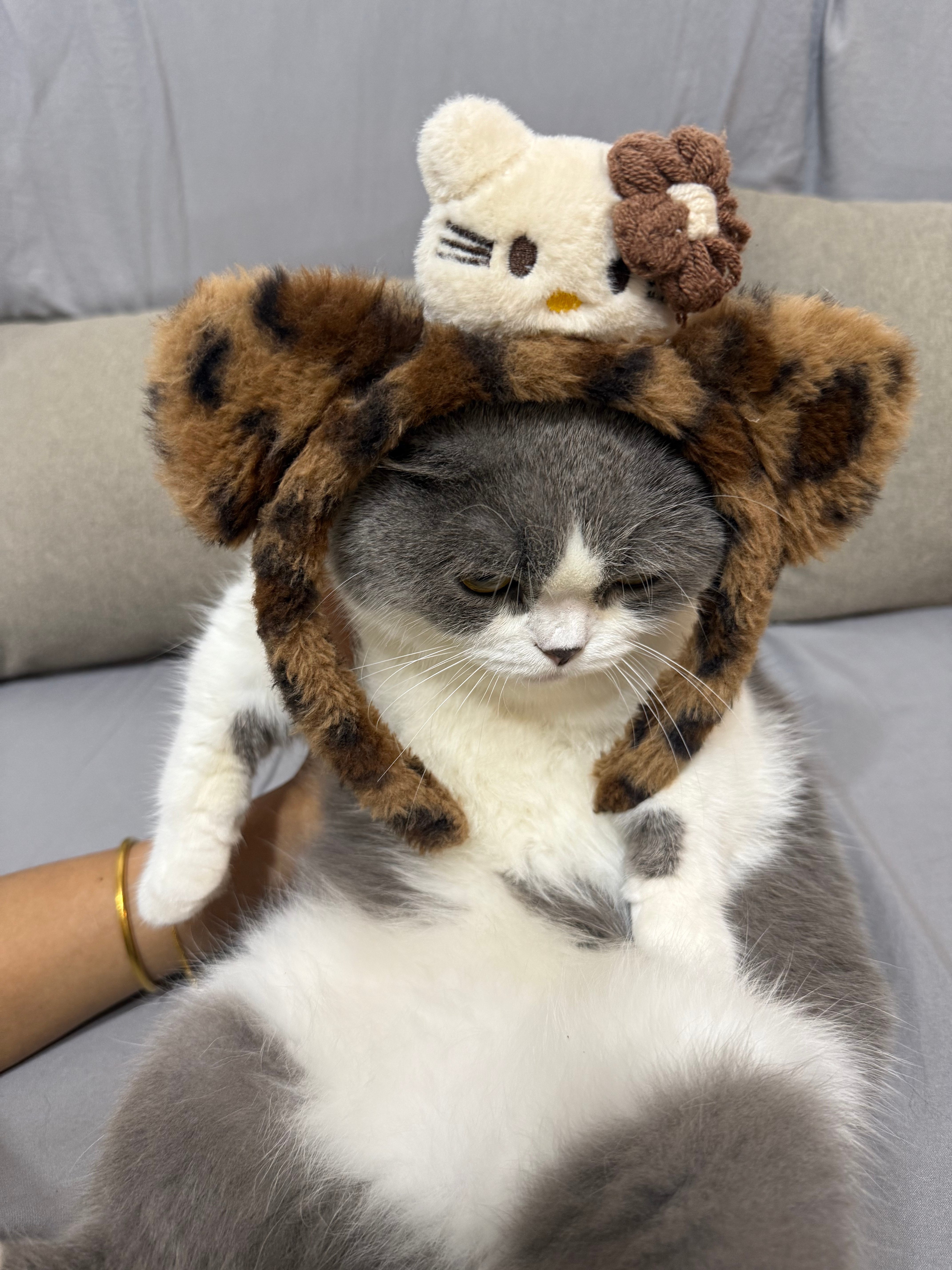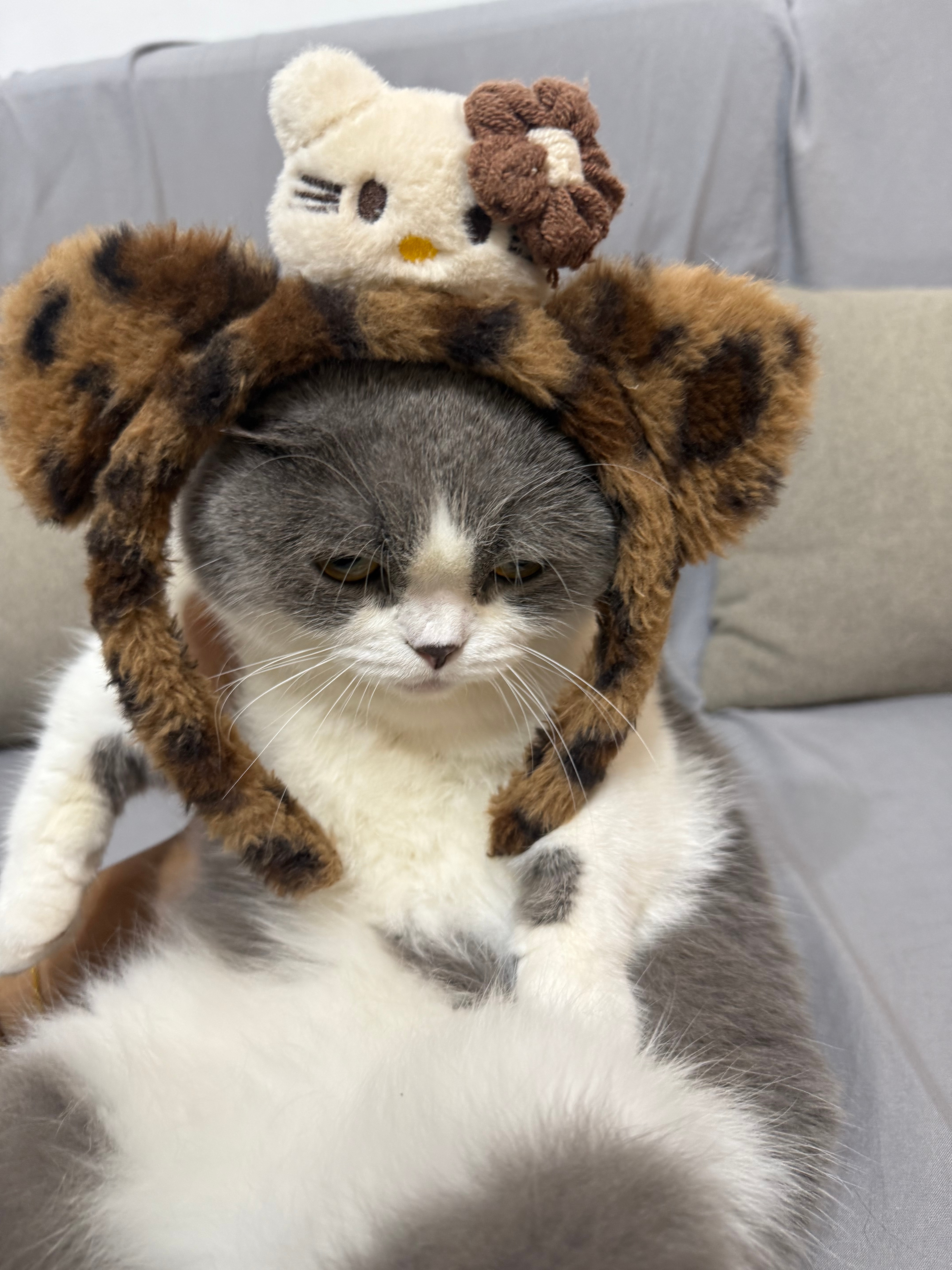 怎么回事,麻薯带上发箍好像被施法了一样,定住了哈哈哈,这个哀怨的眼神有点好笑[求关注]