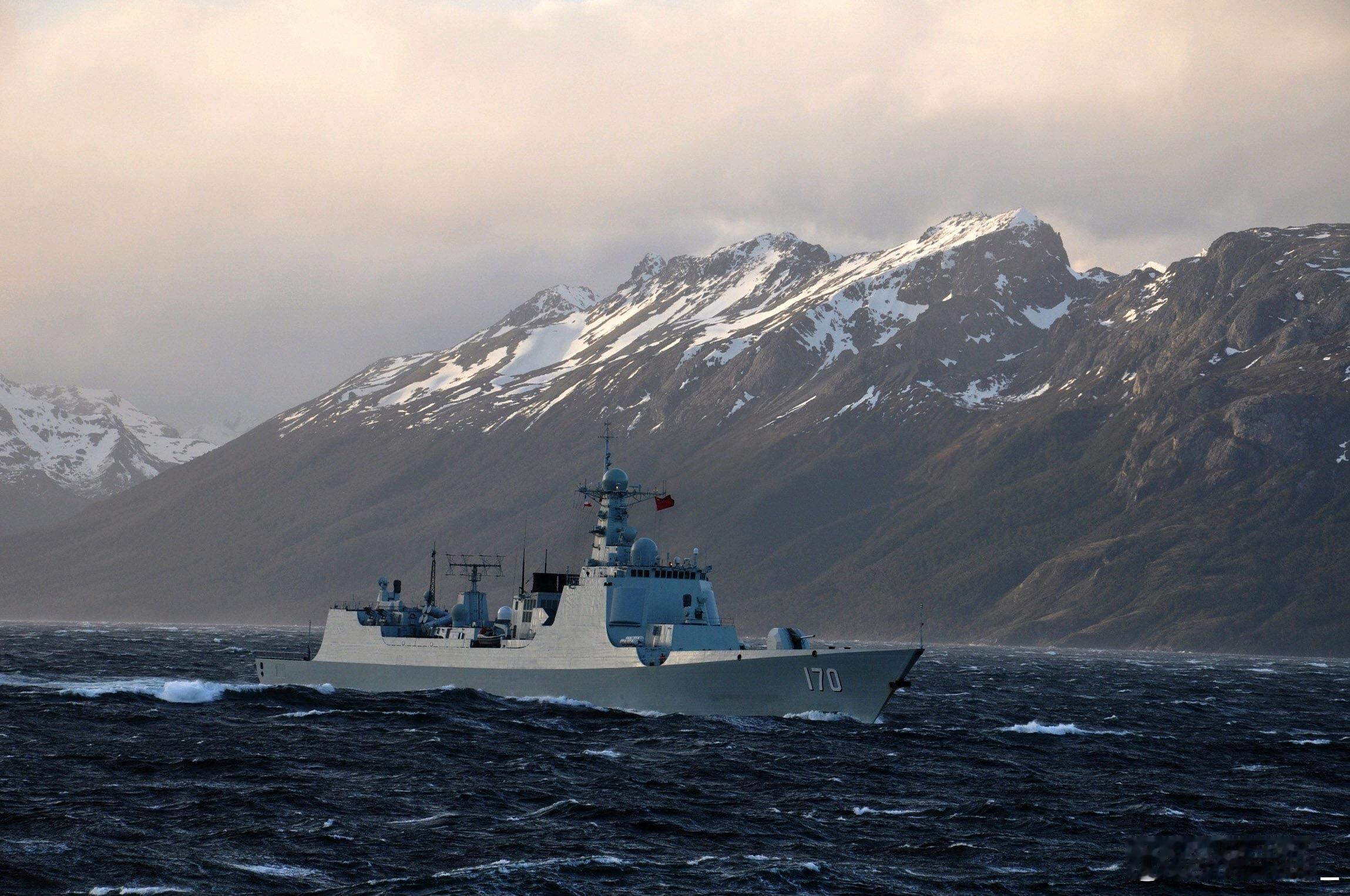 回顾历史性场景:2013年10月,170兰州舰驶过麦哲伦海峡,前往巴西访问。在波涛中疾驰的战舰与岸上雪山交融,相当有气魄。[威武]
