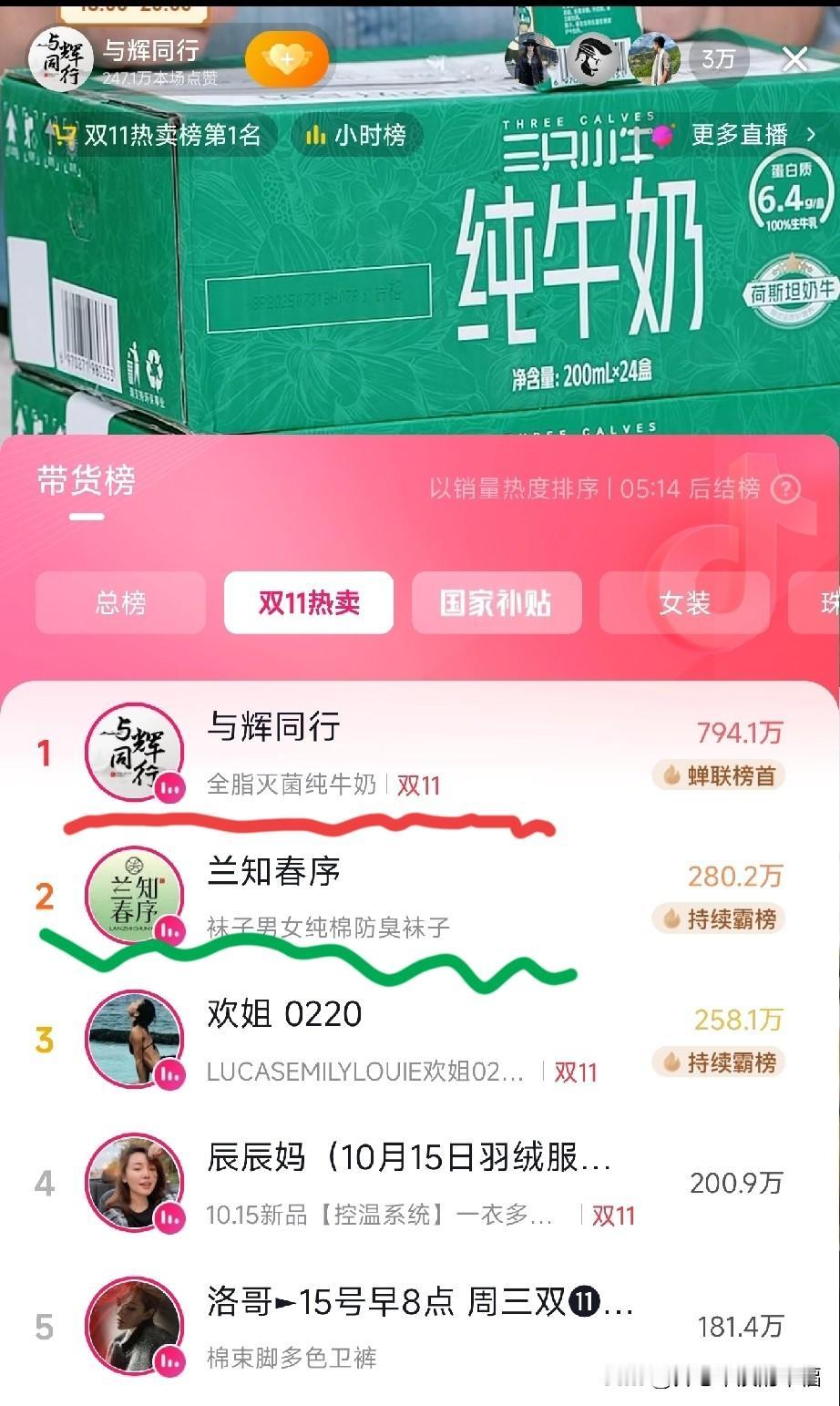 兰知春序双十一热卖榜第二;与辉同行双十一热卖榜第一[赞][赞] 与辉同行,我们就不说了,从东方甄选独立,说明也不是毛头小子了,况且再过段时间就4年了,4年了也算经受住了风吹雨打,地基打牢了。 值得表扬的是兰知春序,在与辉同行的光环下,这颗小树苗并没有因为与辉同行罩着而骄傲自大。就是直播,没有外场,没有活动,小树苗还得继续接受阳光雨露的滋养,才会更结实,更强壮。 特别表杨兰芝春旭的首播真真,在老主播身边,虚心勤恳不张扬,好好学习,认真讲品,全力展现才艺,大家闺秀的气质给大家留下了非常好的印象。 兰知春序未来可期!