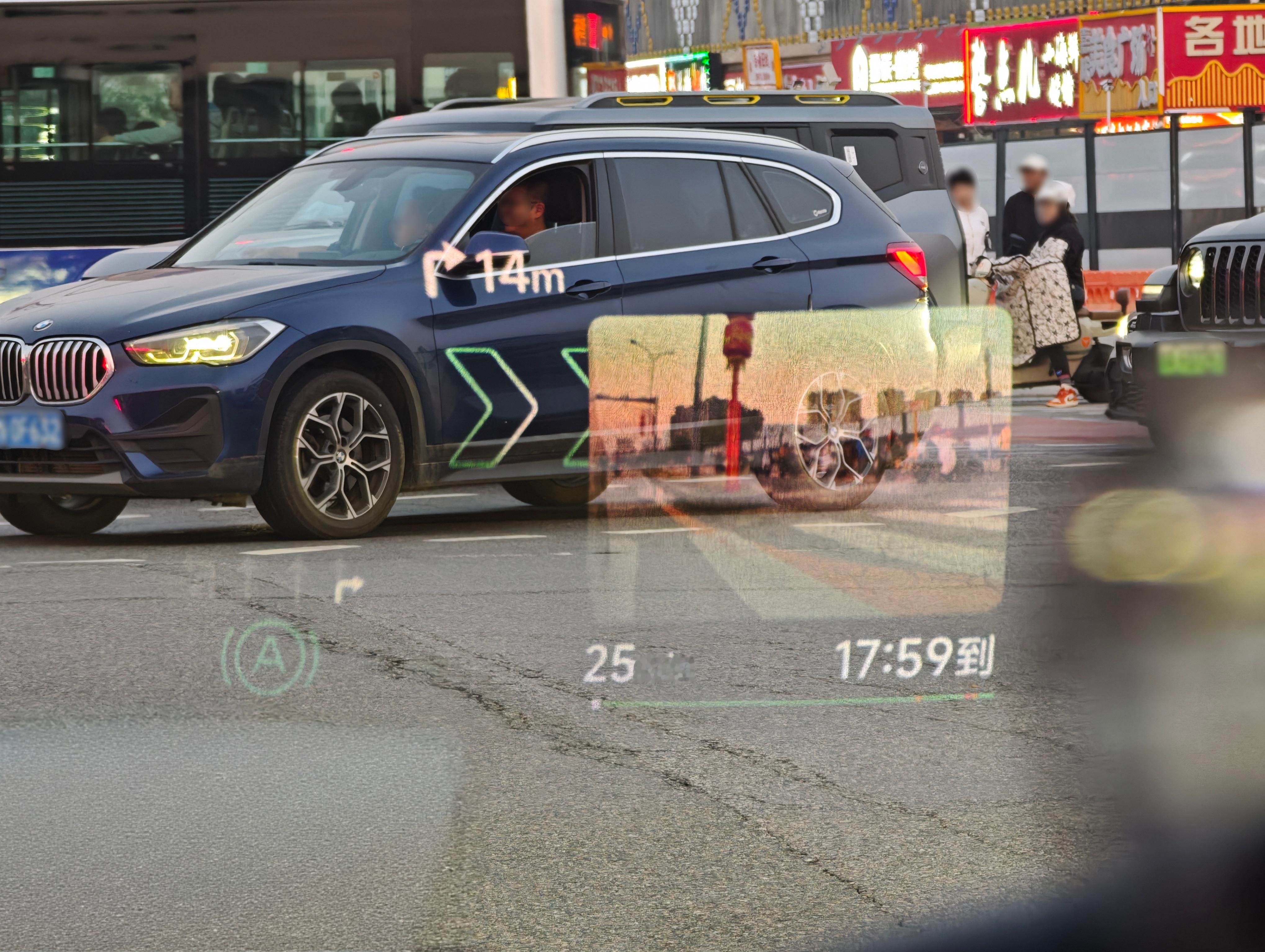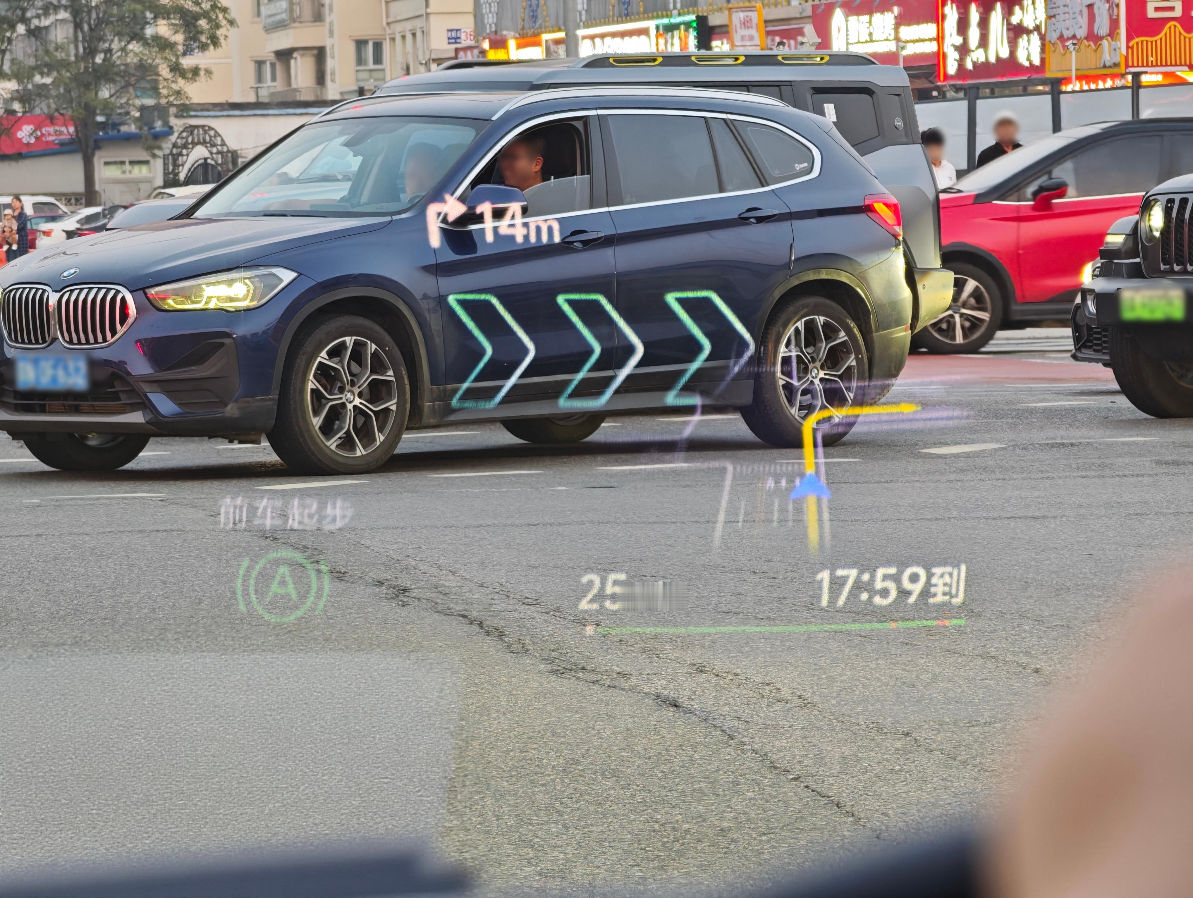 小鹏P7这个大屏AR-HUD确实不错啊,路线指示清晰,转向补盲方便。