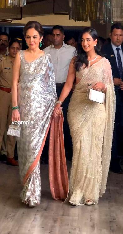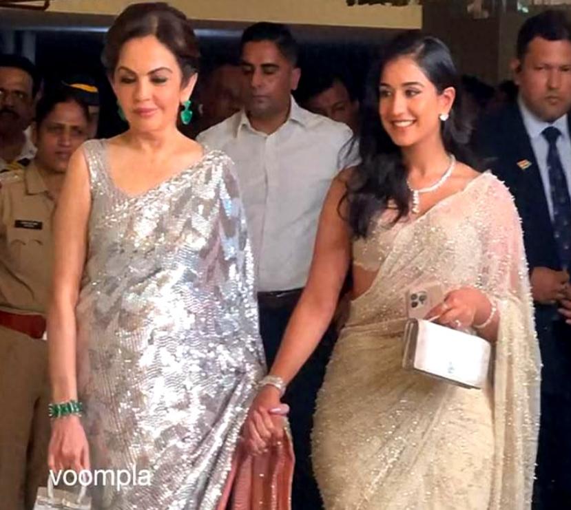 90后拉迪卡与婆婆妮塔牵手亮相排灯节!近日印度首富小儿媳和婆婆妮塔·安巴尼一起在孟买出席活动,没想到的是六旬婆婆却抢了小儿媳的风头。 当天的拉迪卡穿浅色传统服饰纱丽裙,一手牵着富豪婆婆一手拎着精致手包,原本凭借年轻貌美会成为全场焦点,然而婆婆却更胜一场,还有就是婆婆妮塔手上的包包更是闪耀。 仔细看了看拉迪卡还真没有婆婆惹眼,因为婆婆选择的纱丽裙是银光闪闪的亮银色,和小儿媳走在一起光彩照人,反而90后的小儿媳成为了陪衬呢!