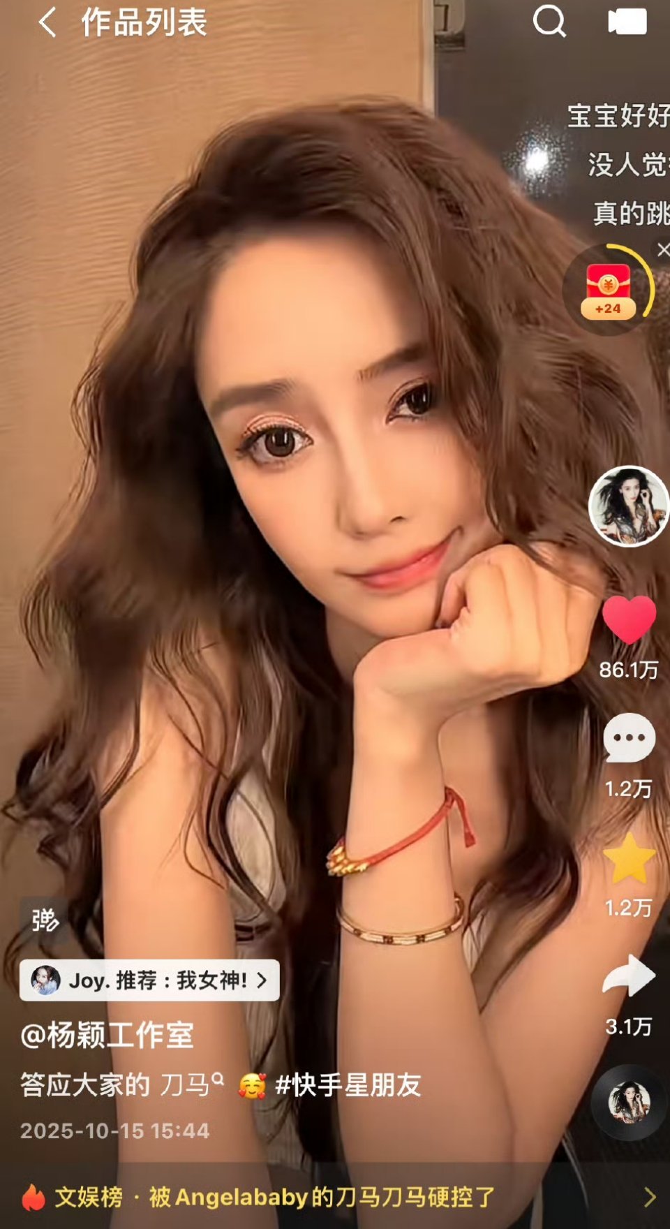 angelababy工作室发的这条视频不到一天时间突破1000w播放量,鼻姐这热度好大