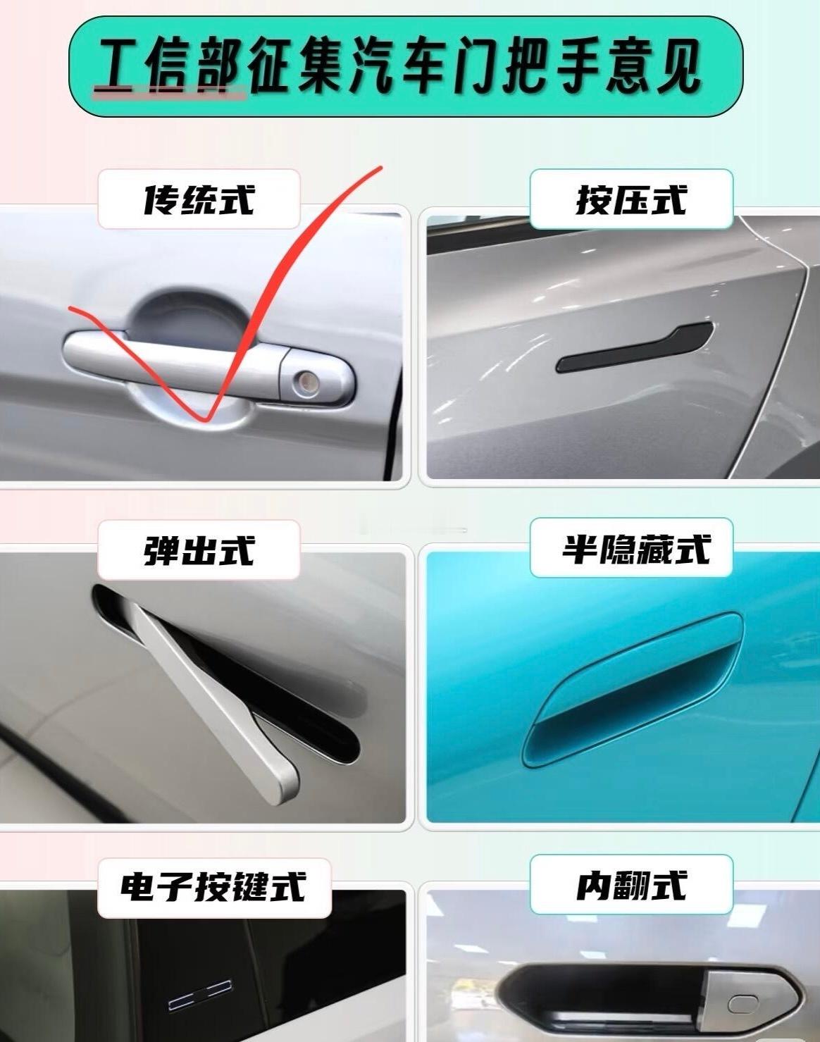 花里胡哨的,这不叫进步,安全风险极大,早就想吐槽了[笑cry]工信部征集汽车门把