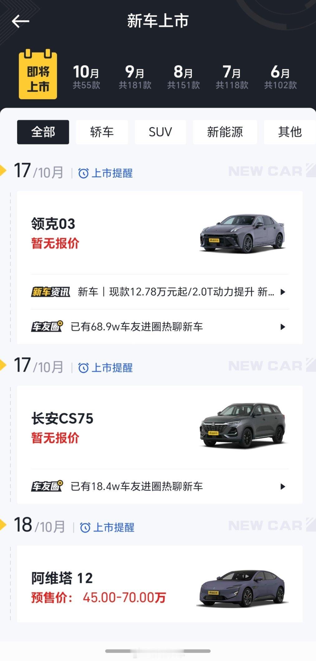 每个月都有这么多款新车上市,真的挑的眼花缭乱,竞争越来越激烈了 ,现在不光要打价格战还要打技术战,车企真是越来越难了