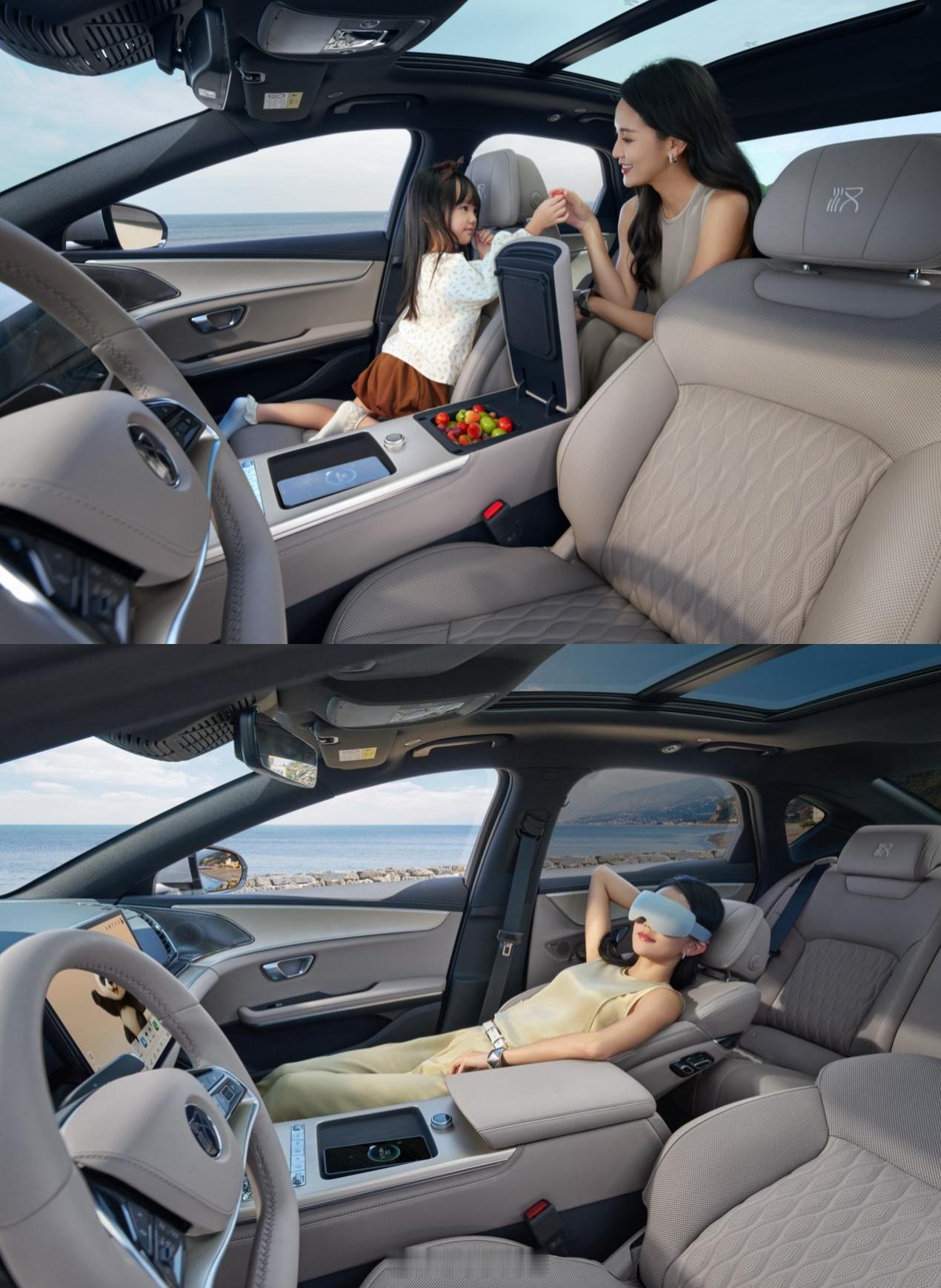 再说说车里的舒适和安全,TBC高速爆胎稳行系统,针对高速行车的极端风险,毫秒级响应稳定车身,云辇-C智能底盘搭配主动预瞄,提前15米识别坑洼、减速带,化解颠簸不适感。家庭出行场景中,4.5L智能冷暖冰箱满足存辅食、饮品的需求,智能防晕车系统解决老人小孩乘车困扰,与好孩子儿童安全座椅的联动简化安装流程。雾凇金等新色、婴儿肌皮质座舱,贴合年轻用户审美与实用需求。