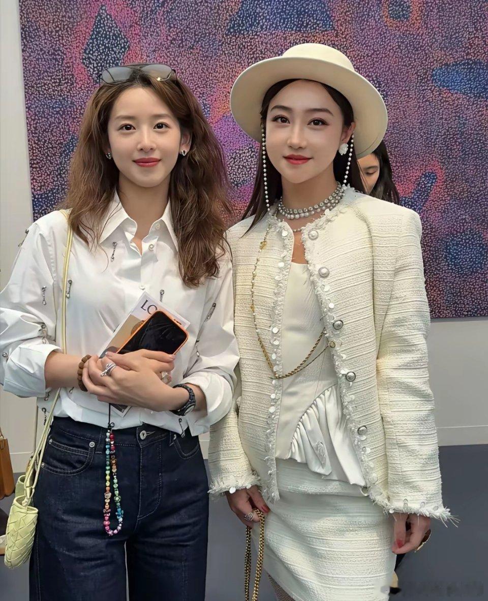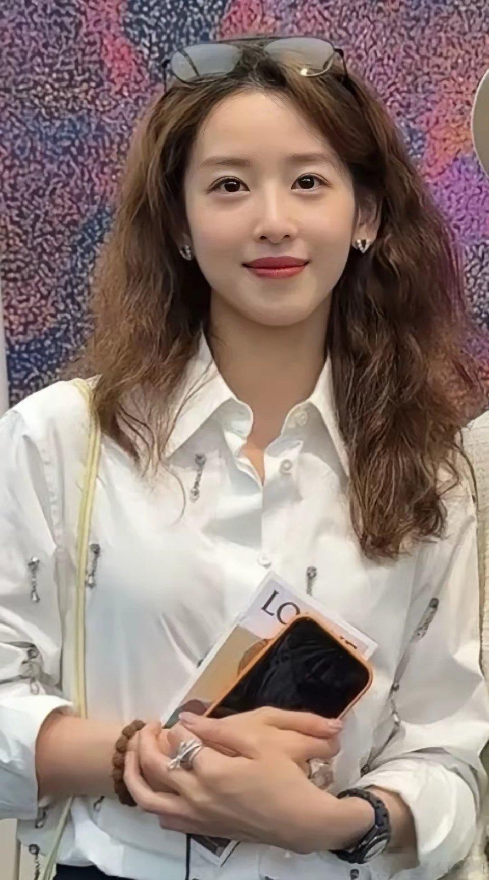 她一手戴着腕表,另一边的宝石戒指看起来价值不菲,加上白衬衫牛仔裤的搭配,让她看起来低调奢华中不乏青春靓丽,品味高贵,气质优雅,贵妇人范十足!
