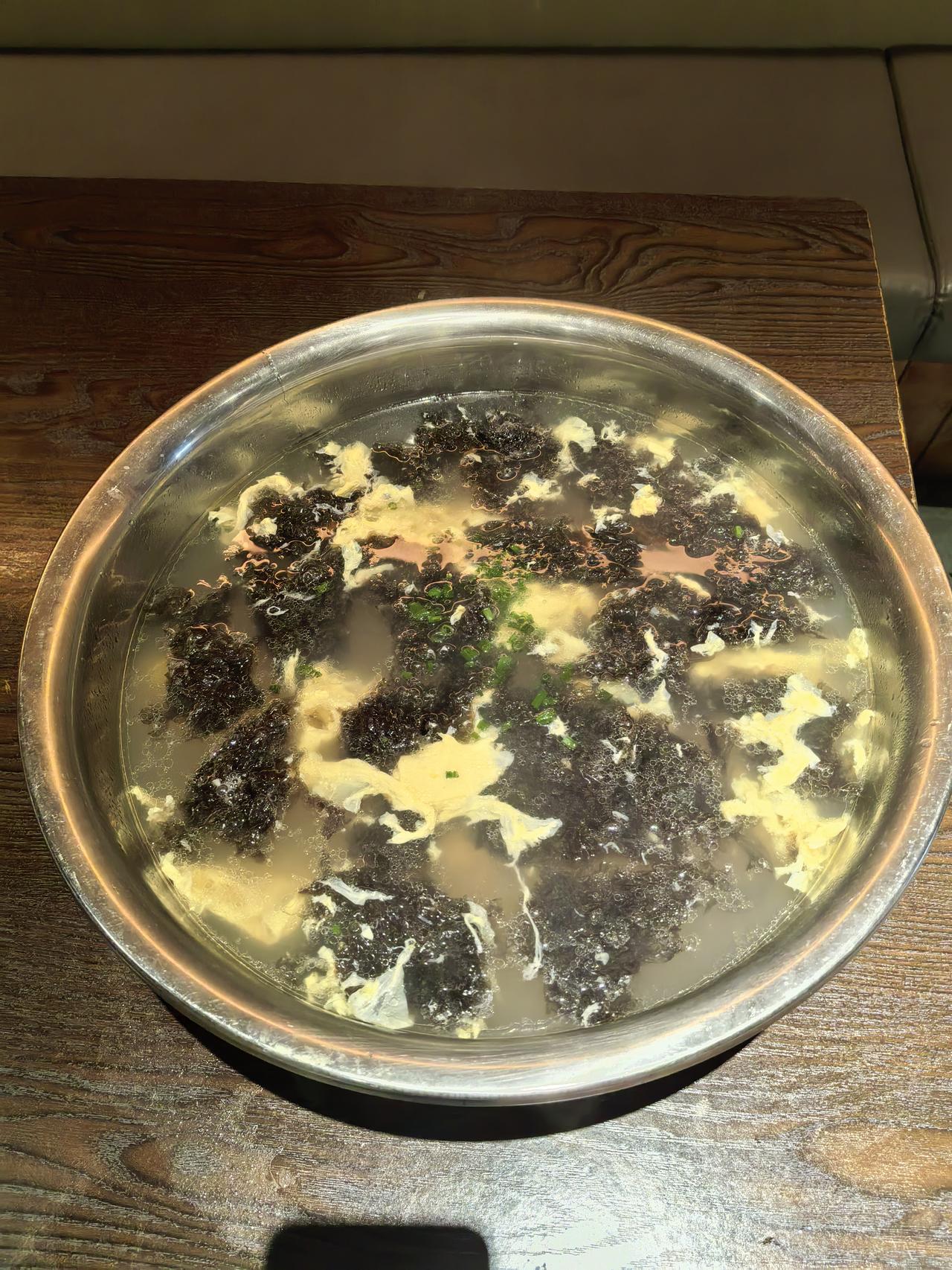 作为整天围着灶台转的厨师,总有人问我:“你天天做山珍海味,吃工作餐会不会觉得寡淡?” 其实恰恰相反——今天这份花菜炒肉、清炒汗菜配紫菜蛋汤,才是我一天里最熨帖的慰藉。 花菜选的是紧实的有机花椰菜,切小朵焯水再过油,边缘微微焦香时盛出;五花肉煸出油脂,加葱姜爆香,倒花菜猛火快炒,最后淋一勺生抽提鲜。筷子夹起一块,花菜脆嫩带点焦香,肉片油润不腻,咸香渗进每一丝纤维,是最下饭的家常味。 清炒汗菜要的就是“快”,热锅冷油,蒜末爆香后倒入洗净切段的汗菜,大火翻炒几十秒,见菜叶变软、析出清亮的汁水就关火,撒盐调味。端上桌时绿油油的,入口软嫩带着自然的清甜,连菜汁拌米饭都香。 最后来碗紫菜蛋汤收尾。鸡蛋打散淋成蛋花,紫菜泡软后下锅,加少许虾皮增鲜,出锅前滴两滴香油。汤品清亮,蛋花嫩、紫菜鲜,喝一口暖到胃里,解了炒菜的烟火气,也给忙碌的上午画个舒服的逗号。 比起餐厅里精致的宴席菜,这份工作餐没有复杂技法,却藏着我们后厨人最懂的“适口为珍”——简单的食材,用心做,就是最踏实的幸福。你们今天的工作餐吃了啥?