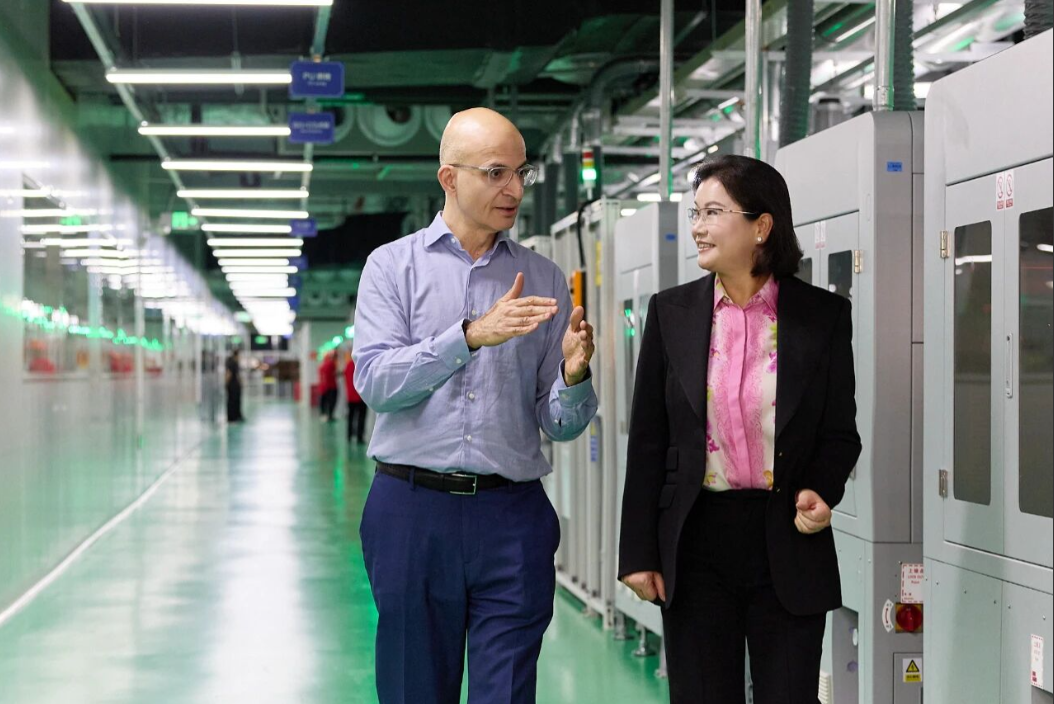 10月14日,苹果公司首席运营官Sabih Khan一行到访江苏泰州蓝思精密,在蓝思科技董事长周群飞陪同下深入车间探访。