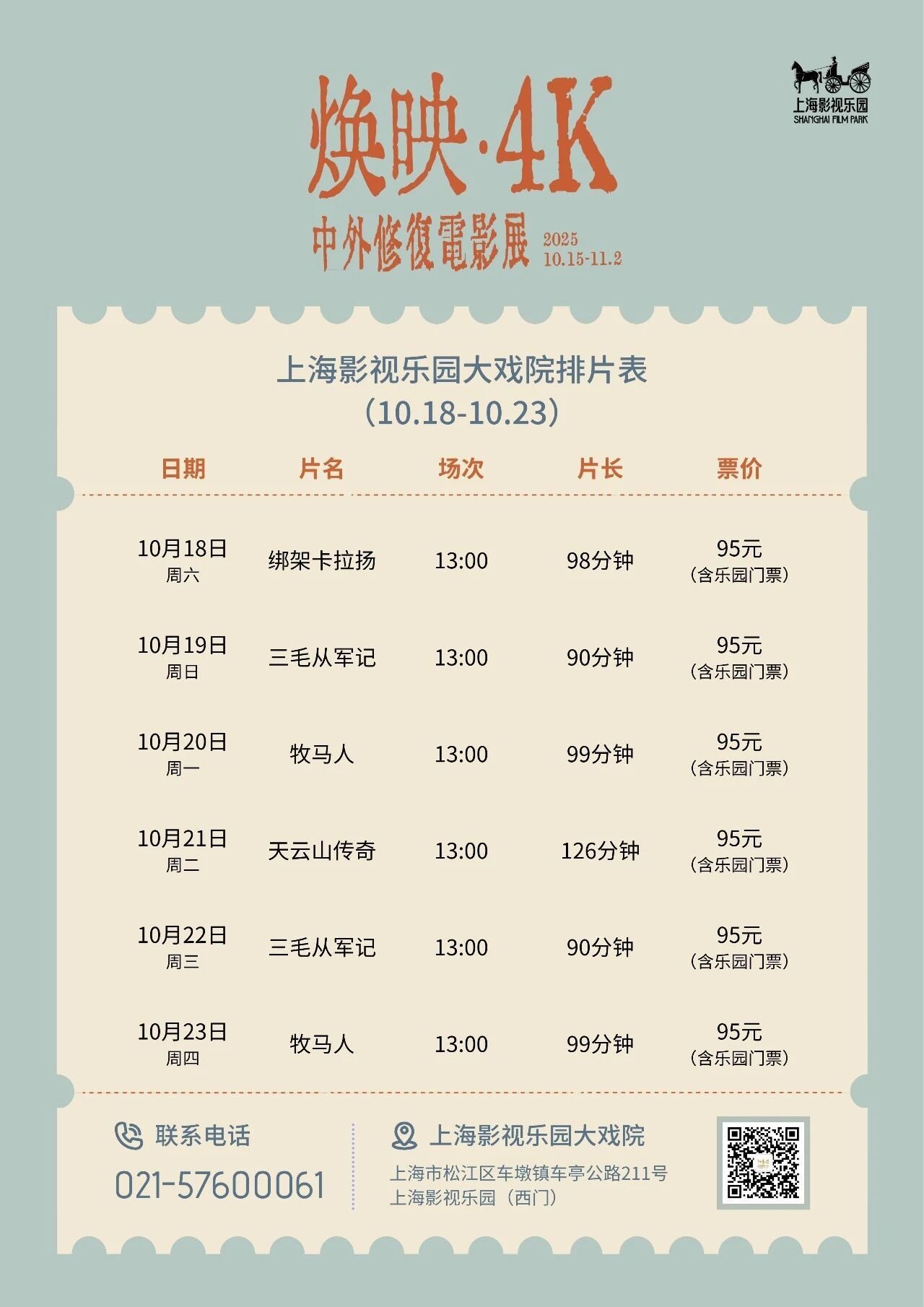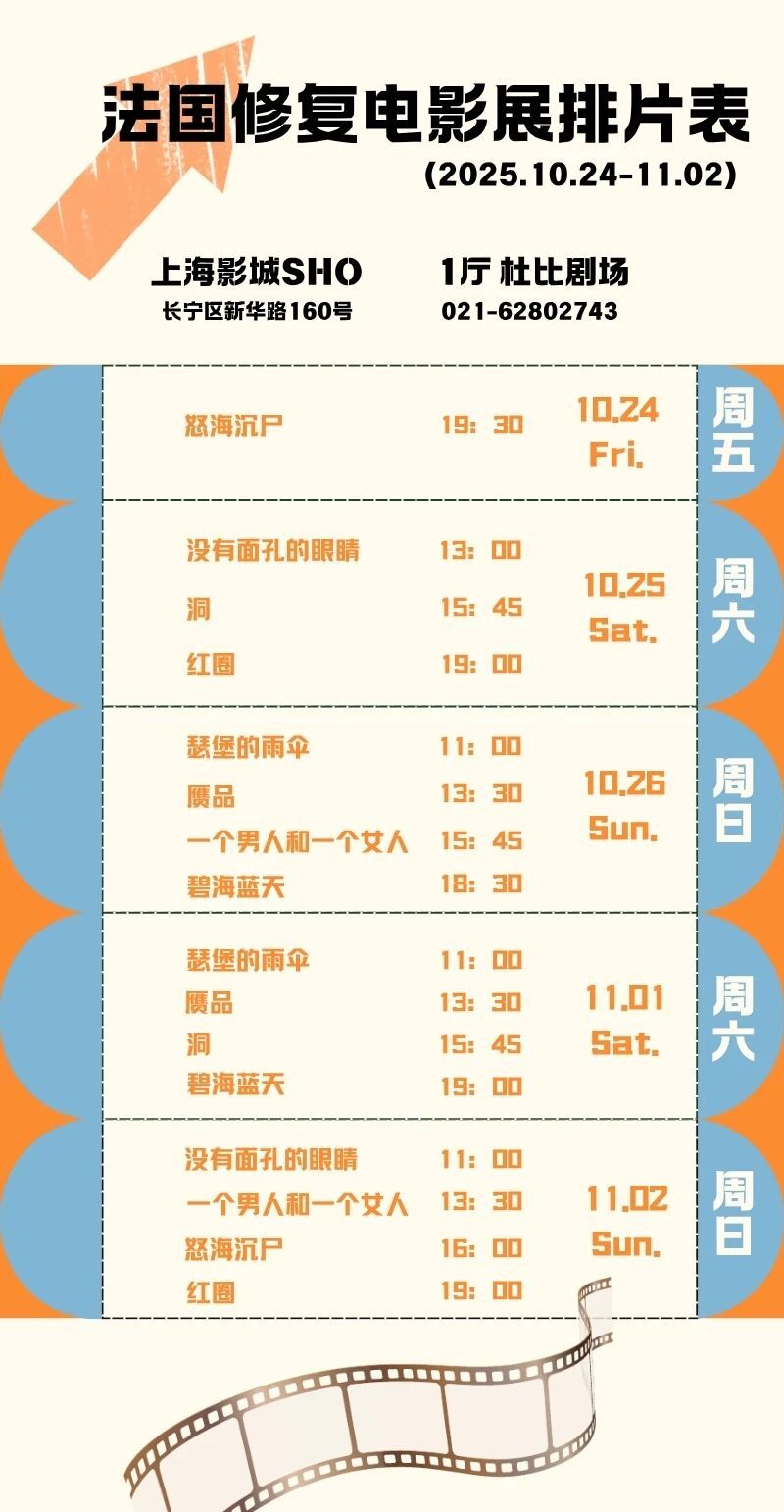 影展上海上影电影制作有限公司主办的焕映·4K中外修复影展都已开票,分为法国经典
